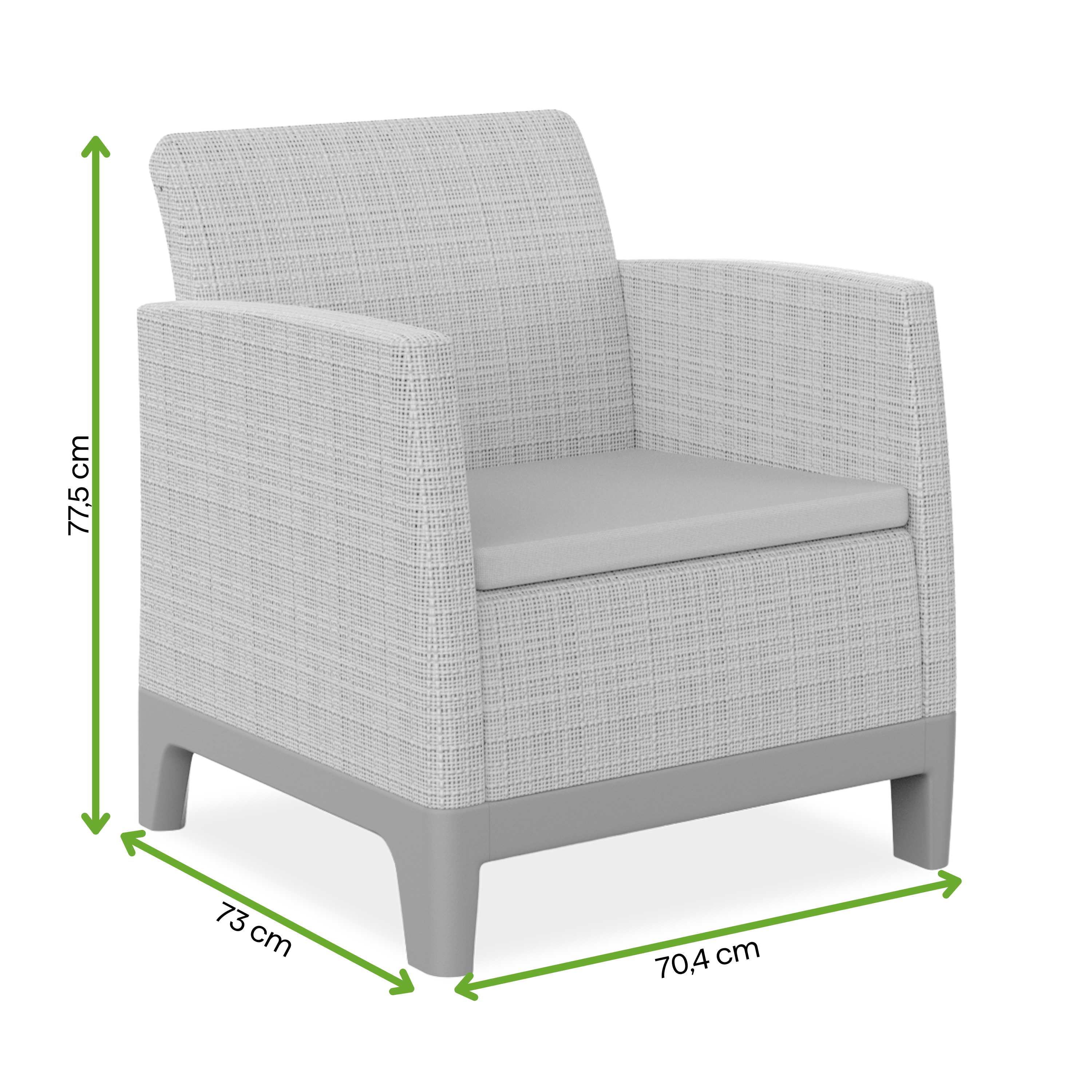 Nowoczesne, dwukolorowe wykończenie: Stylowe połączenie barw Ash Grey i Soft Beige sprawia, że fotele stają się elegancką wizytówką Twojego tarasu, pasującą do każdego modnego wnętrza i ogrodu.