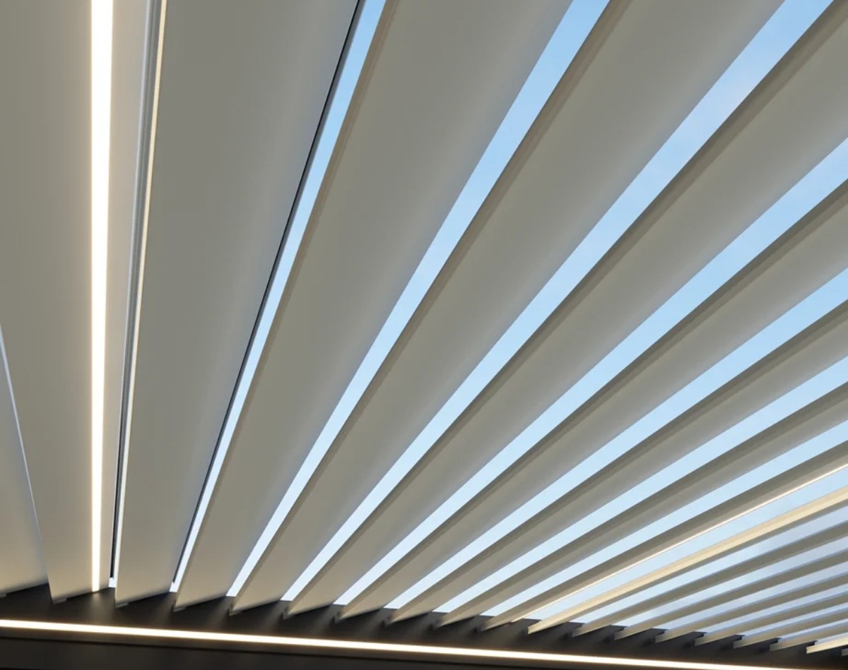 Nowoczesne lamele dachowe sterowane automatycznie umożliwiają szybkie i łatwe dostosowanie przestrzeni pod pergolą do aktualnych warunków i indywidualnych preferencji. W kilka chwil można je zamknąć, aby uzyskać kojący cień, lub uchylić, by cieszyć się promieniami słońca i świeżym powietrzem. To inteligentne rozwiązanie, które zapewnia wygodę i komfort wypoczynku niezależnie od kaprysów pogody.