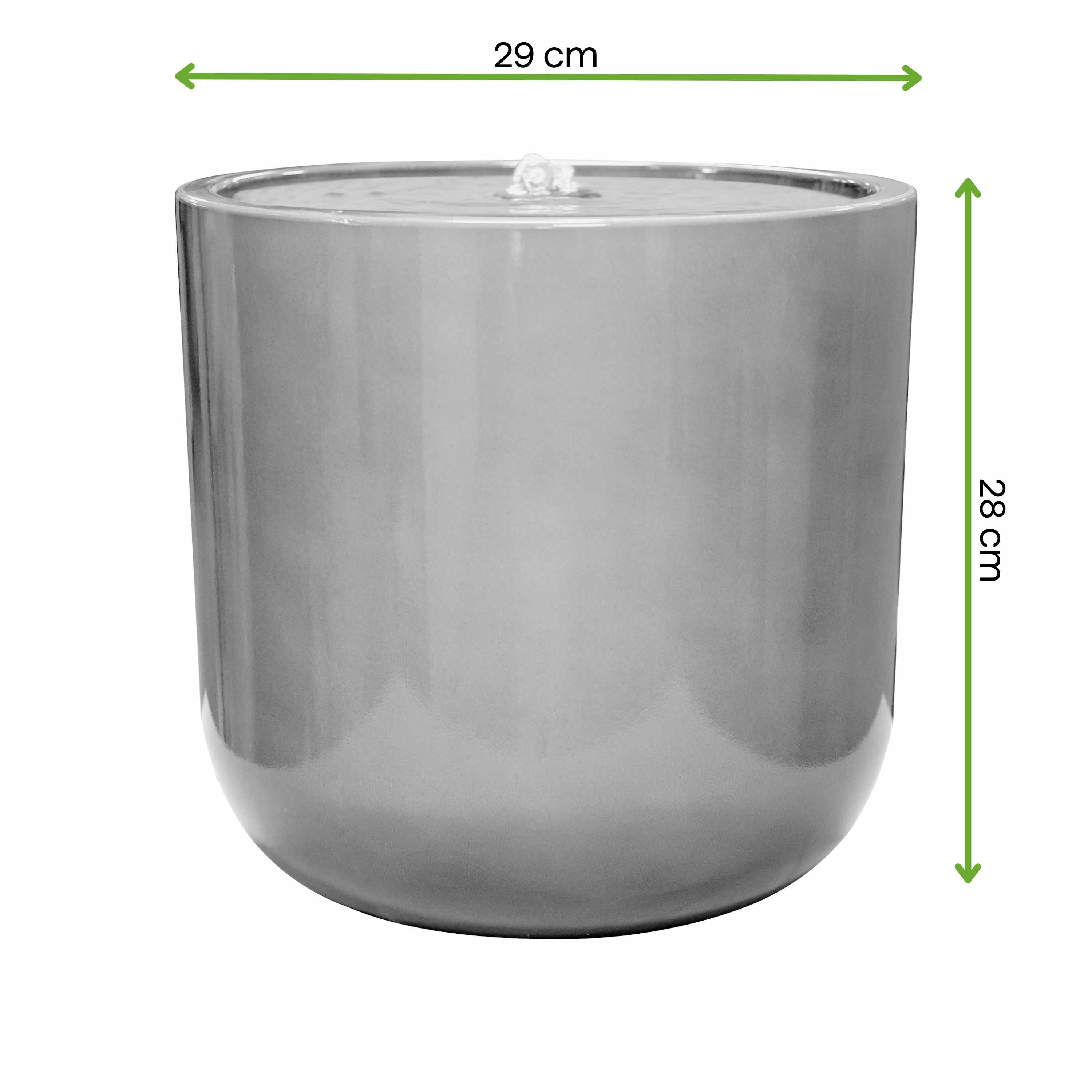 Dekoracyjna fontanna ogrodowa LUMINA LED 29x28 cm od MoodMe w kolorze Stone Grey to stylowa dekoracja wodna, która pozwala stworzyć w ogrodzie lub na tarasie przyjemną przestrzeń do relaksu. Subtelny szum wody oraz delikatne oświetlenie LED budują wyjątkowy nastrój, sprzyjający odpoczynkowi. Dzięki kompaktowym wymiarom fontanna świetnie sprawdzi się nie tylko w ogrodzie, ale również na mniejszych tarasach czy balkonach. Zamknięty obieg wody sprawia, że urządzenie jest wygodne w użytkowaniu i nie wymaga podłączenia do instalacji wodnej.