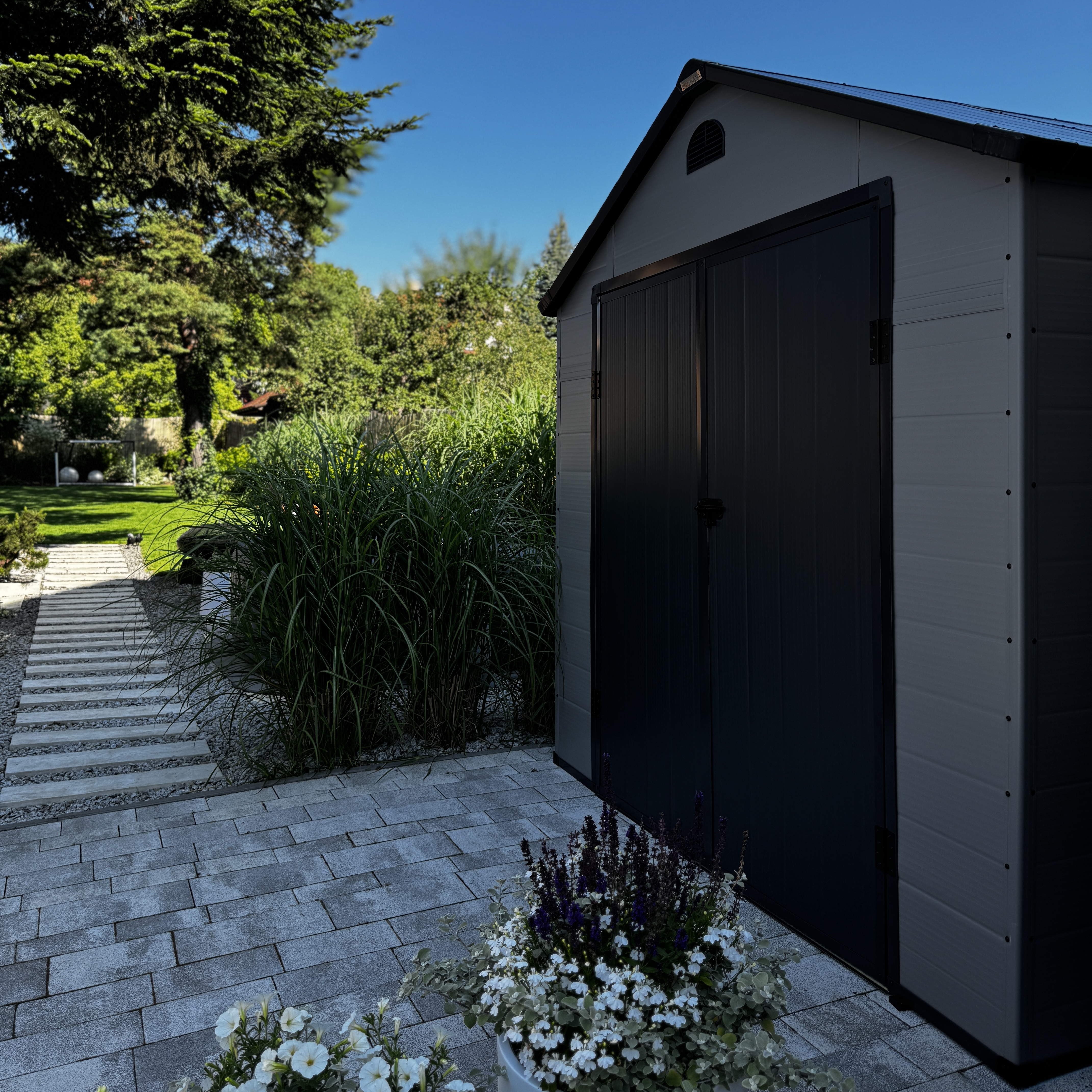 Potrzebujesz inspiracji? Oto kilka przykładowych realizacji domku do ogrodu VERMONT 242x192cm Light Grey - Hardmaister u naszych klientów. Nie czekaj! Tak może wyglądać Twój ogród!