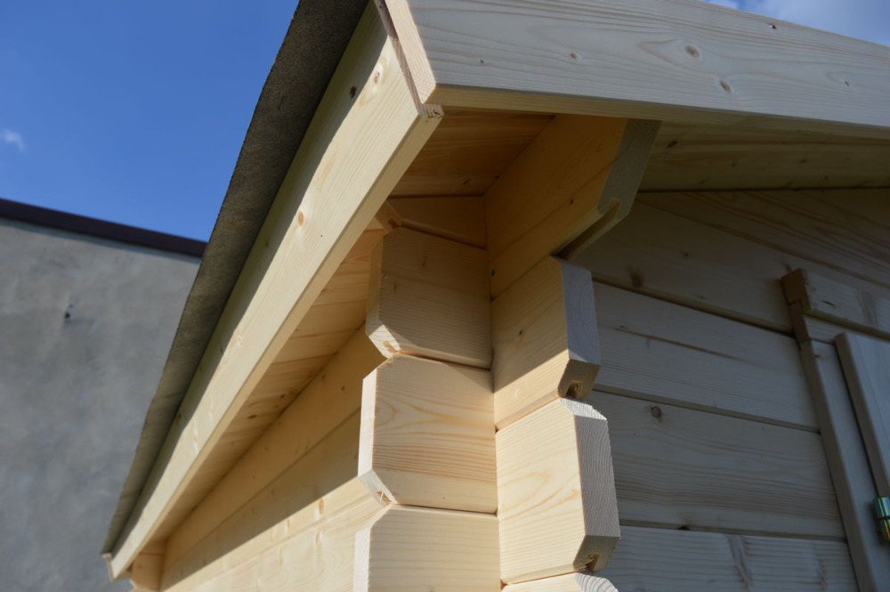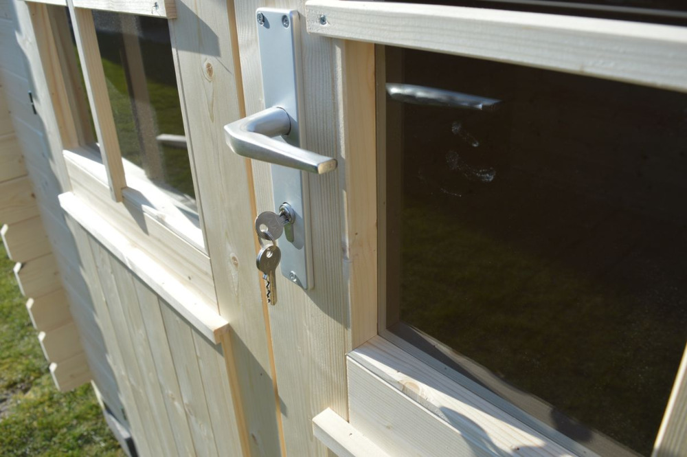W przedniej części domku zamontowano duże, dwuskrzydłowe półpełne drzwi wejściowe, które pełnią jednocześnie funkcję okien. Wpuszczają do wnętrza światło. Z przodu domku i po jego bokach zastosowano wypust dachu o długości 20 cm. Konstrukcję można spersonalizować wedle własnych preferencji. Zapraszamy do zapoznania się z szeroką gamą usług dodatkowych. Proponujemy, m.in. kilka opcji malowania zewnętrznego, zróżnicowane pokrycia dachowe, a także możliwość wykonania ocieplenia dachu, podłogi i ścian.