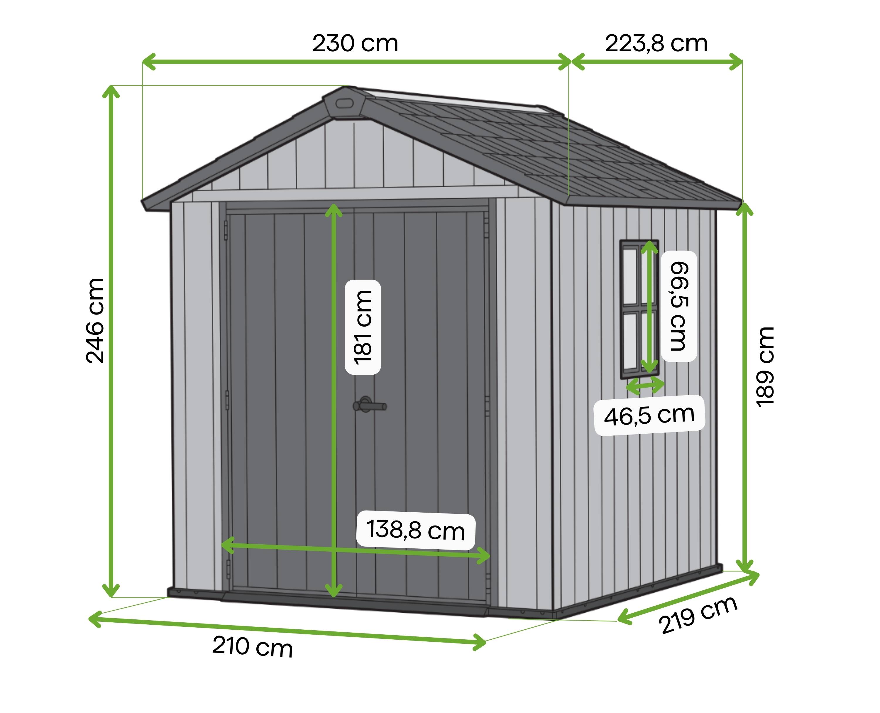 Elastyczny montaż – Domek narzędziowy można zamontować w dwóch wariantach (7x7,5 lub 7,5x7), co pozwala na idealne dopasowanie go do dostępnej przestrzeni.