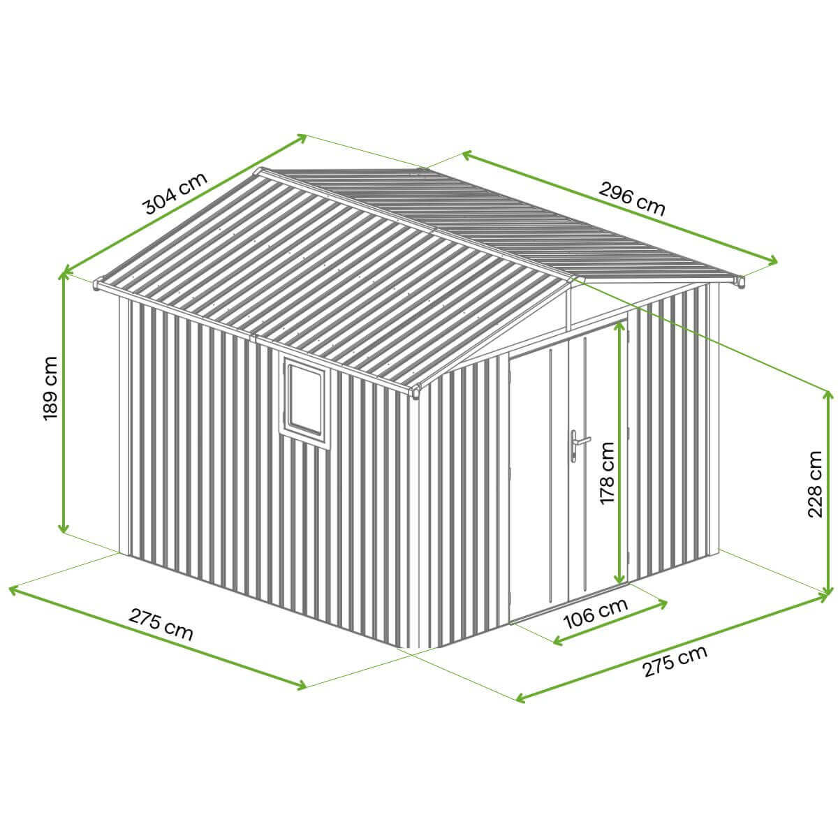 MICHIGAN 304 x 296cm to praktyczny domek narzędziowy o całkowitej powierzchni 9 m². Konstrukcja wykonana ze stali ocynkowanej jest odporna na korozję, co przekłada się na trwałość i wieloletnie użytkowanie domku. Solidna konstrukcja o nośności ponad 100 kg/m² śniegu gwarantuje bezpieczeństwo i trwałość nawet w trudnych warunkach zimowych. Domek został wyposażony w magnetyczne okno z PC , które można umieścić po różnych stronach, dostosowując domek do indywidualnych potrzeb użytkownika.