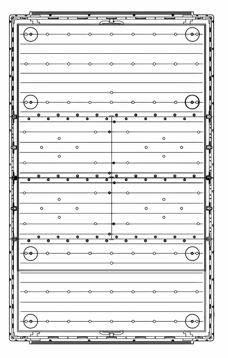 Dla pełnej stabilności zaleca się przymocowanie domku Keter Oakland 1175 do podłoża. W podłodze znajdują się dedykowane punkty montażowe ułatwiające przytwierdzenie za pomocą odpowiednich śrub (brak w zestawie).
