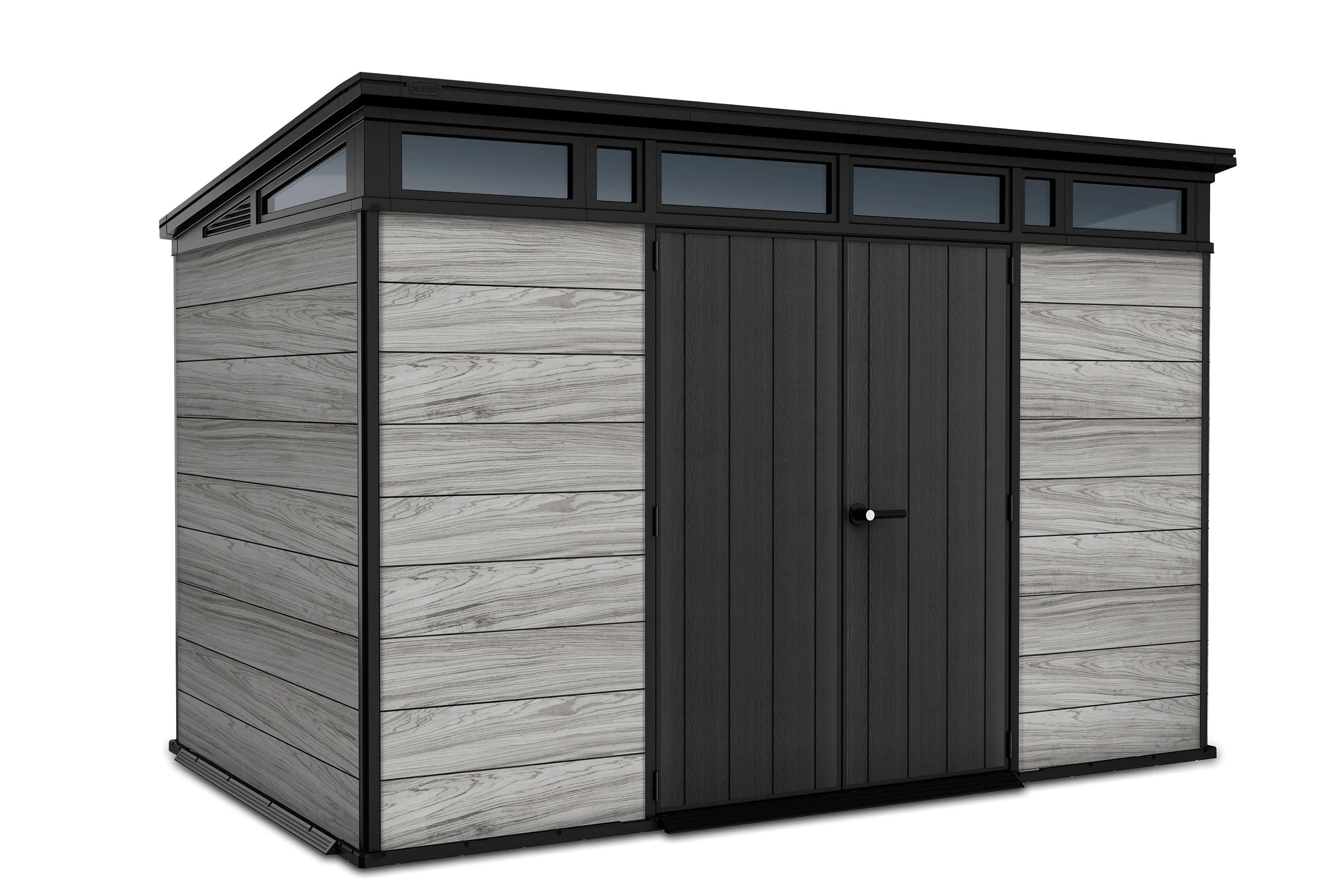 Domek narzędziowy Pent 11x7 Storm Grey z serii Signature Collection marki Keter to zestawienie nowoczesnego stylu oraz wytrzymałości. Innowacyjna technologia DecoCoat idealnie imituje naturalne drewno, wykluczając konieczność częstego odświeżania, lakierowania czy walki z rdzą. Wzmocniona elementami stalowymi konstrukcja zapewnia pełną sztywność, a umieszczone pod dachem przeszklenia dostarczają optymalną ilość dziennego światła. Ten odporny na słońce i deszcz schowek ogrodowy doskonale zabezpiecza sprzęty, przy okazji nadając otoczeniu elegancki wygląd. Postaw na wysoką jakość i użyteczność na dekady już dziś!