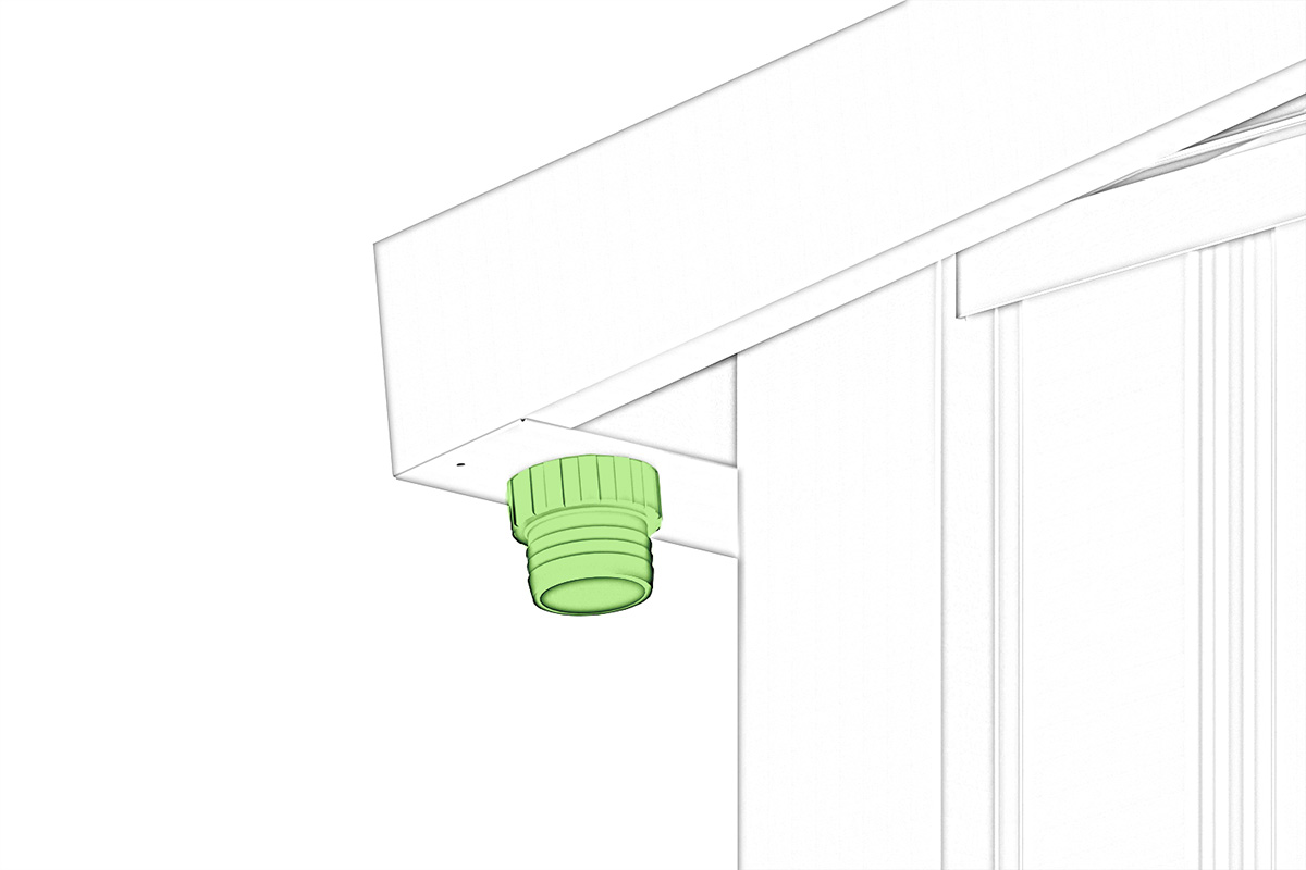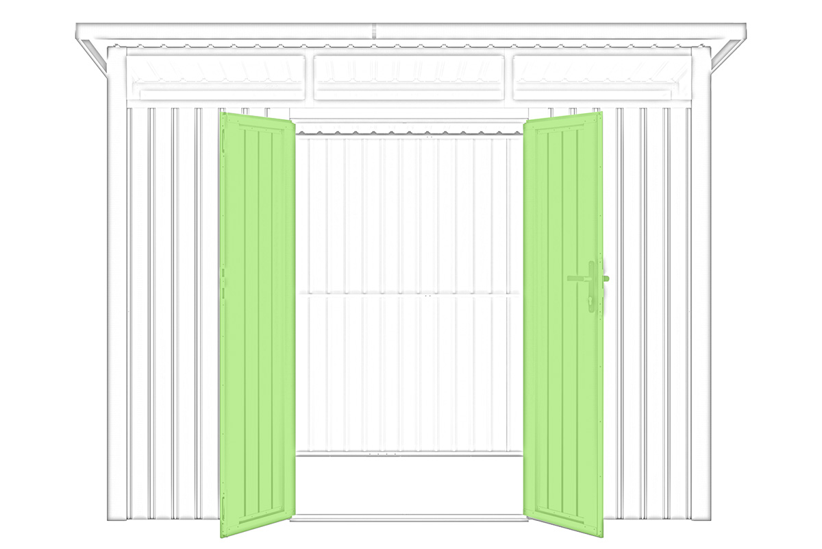 Domek narzędziowy wyposażony jest w solidne, dwuskrzydłowe drzwi na zawiasach, które zapewniają wygodne i szerokie wejście – idealne do przechowywania większych narzędzi i sprzętów ogrodowych. Fabryczne wstępne zmontowanie drzwi skraca czas montażu i gwarantuje precyzyjne dopasowanie. Trwała konstrukcja drzwi zwiększa bezpieczeństwo i komfort codziennego użytkowania.
