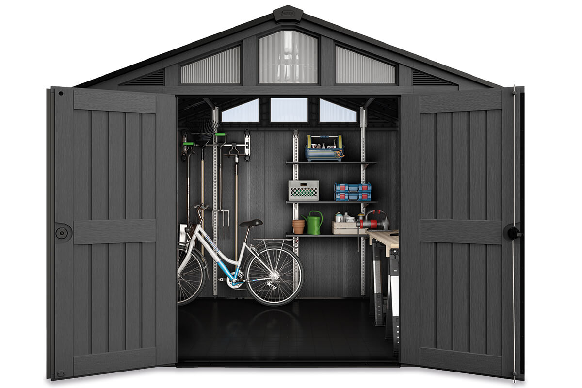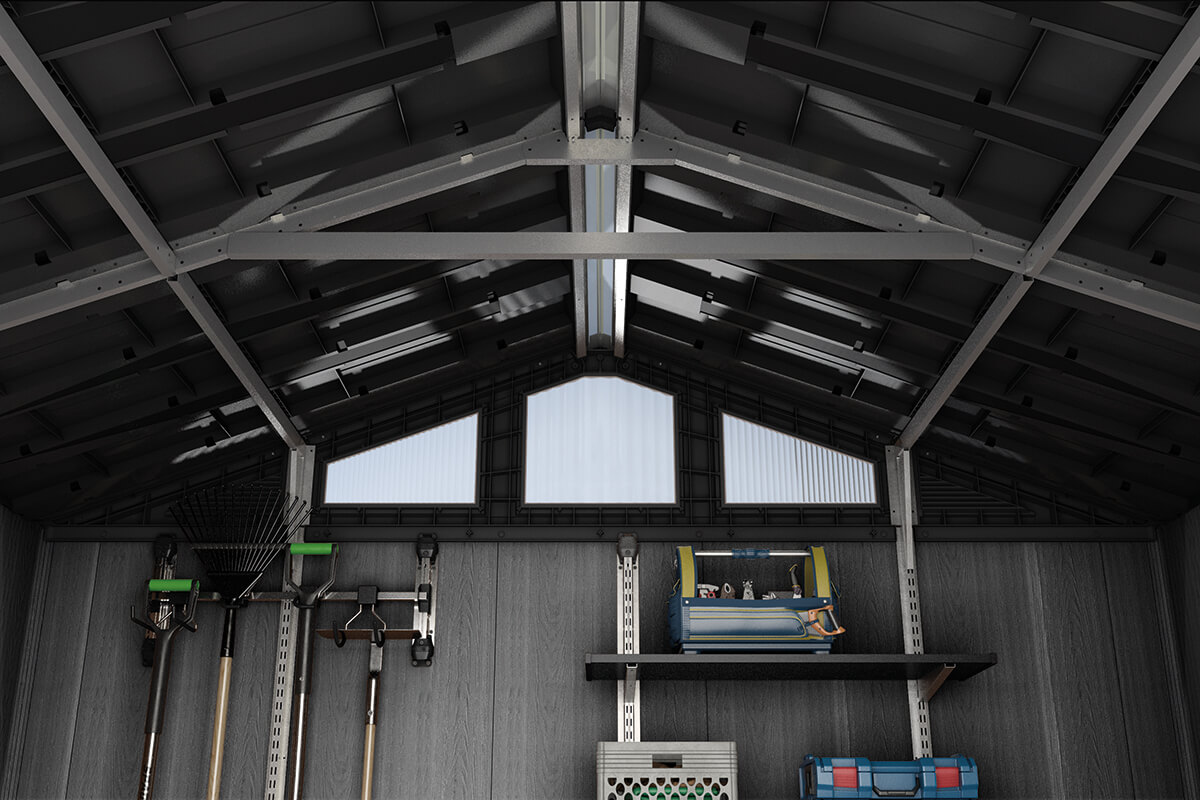 Domek STRONGHOLD 10x8 oferuje prawie 8 m² powierzchni użytkowej, co czyni go idealnym miejscem do przechowywania kosiarek, narzędzi, rowerów czy wyposażenia sezonowego.