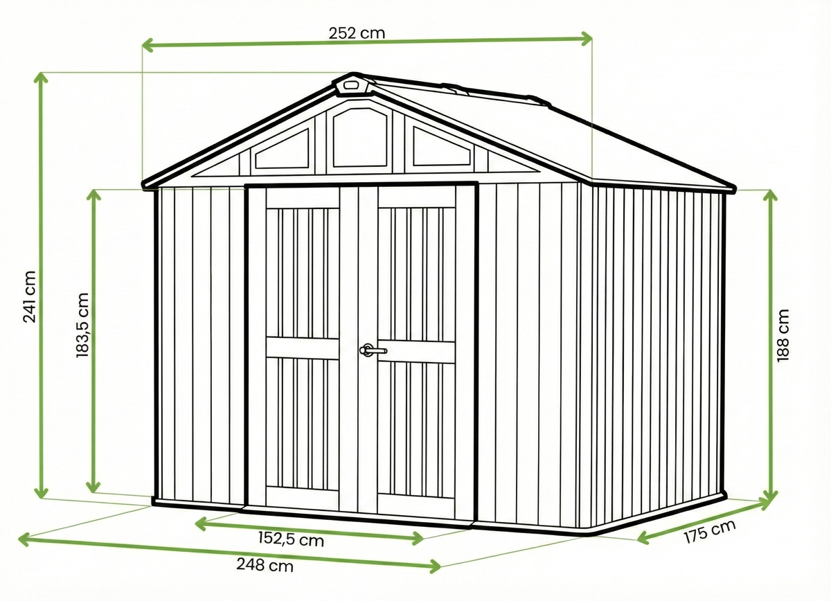 Model Stronghold 8x6 to Twój sposób na idealny porządek. Jego imponujące wnętrze bez trudu pomieści rowery, kosiarkę-traktorek, a nawet profesjonalny stół warsztatowy. Przemyślany układ sprawia, że wszystko jest zawsze pod ręką, a Ty zamiast na walce z bałaganem, możesz skupić się na tym, co naprawdę lubisz – pracy w ogrodzie lub relaksie.