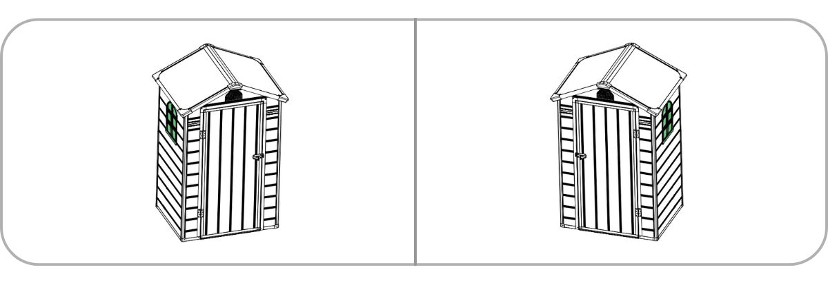 Elastyczność domku VERMONT wynika z możliwości montażu okna na wybranej ścianie. Dzięki temu wnętrze jest lepiej oświetlone, a domek można łatwo dostosować do potrzeb użytkownika i układu ogrodu.