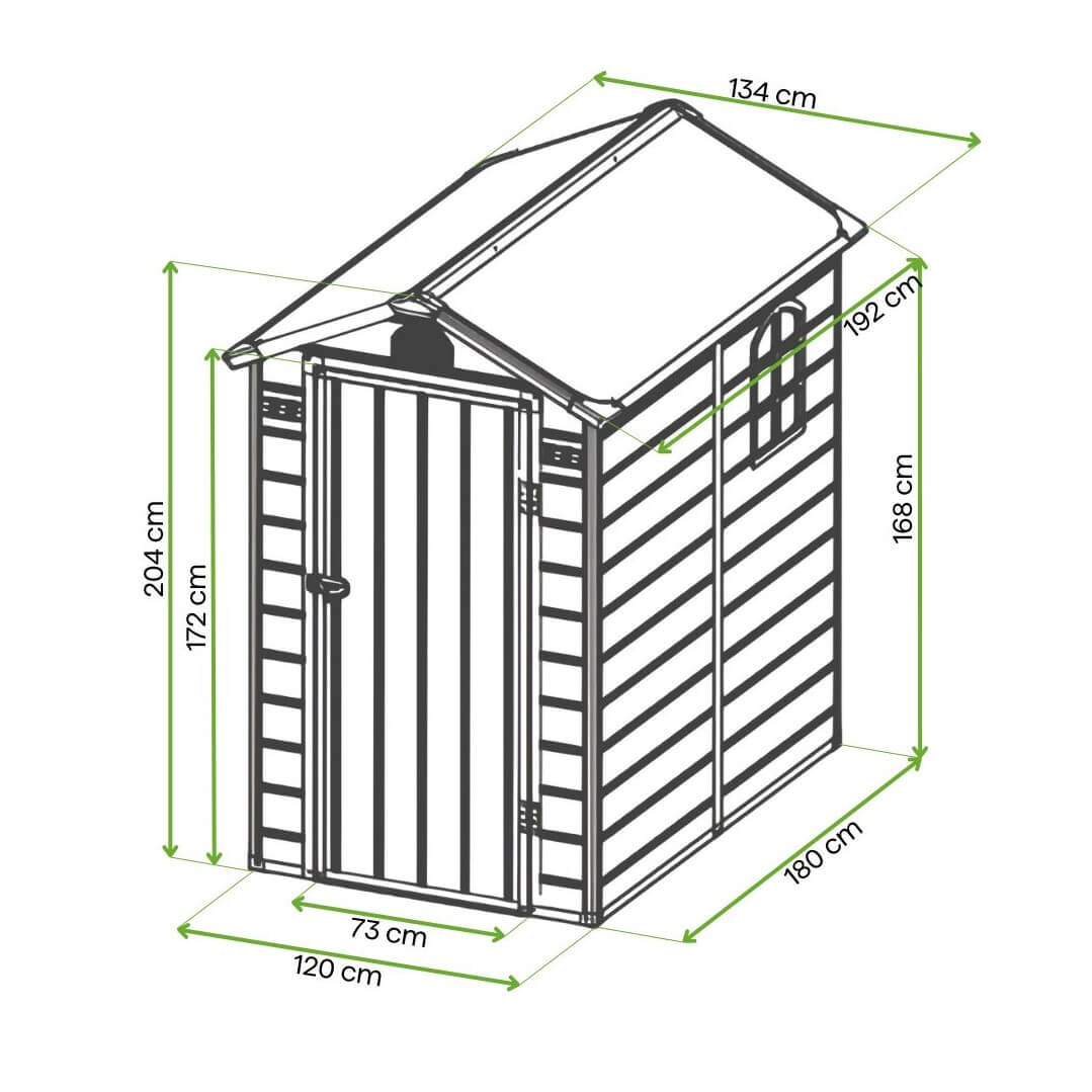 Model VERMONT wyróżnia się praktycznością i eleganckim designem, idealnym do przechowywania narzędzi oraz akcesoriów. Dwuspadowy dach skutecznie odprowadza wodę i śnieg, zapewniając bezpieczeństwo przez cały rok. Domek jest łatwy w pielęgnacji – wystarczy wilgotna gąbka.