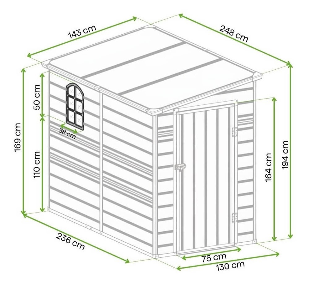 Domek narzędziowy Boston to doskonały wybór do ogrodu, pozwalający na przechowywanie sprzętu, narzędzi i akcesoriów w sposób uporządkowany i bezpieczny. Wykonany z lekkiego, ale wytrzymałego polipropylenu, jest odporny na uszkodzenia i zmienne warunki atmosferyczne. Spadowy dach skutecznie zapobiega gromadzeniu się deszczu i śniegu, co umożliwia jego całoroczne użytkowanie. Wentylacyjny panel zapewnia optymalną cyrkulację powietrza, chroniąc sprzęt przed wilgocią, a okno wpuszcza naturalne światło do wnętrza.