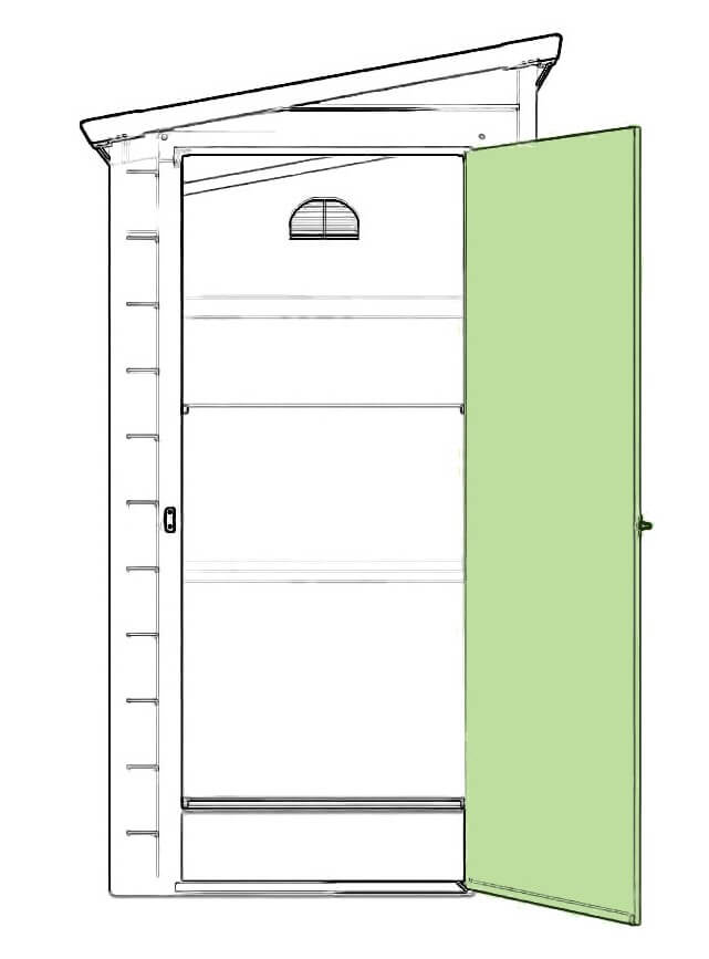 Domek narzędziowy Boston ma pojedyncze drzwi zamontowane na zawiasach, co pozwala na łatwy dostęp do środka. Ich kompaktowa forma pasuje do ogrodów o dowolnej wielkości, a solidne wykonanie zapewnia trwałość i wygodę podczas codziennego korzystania.
