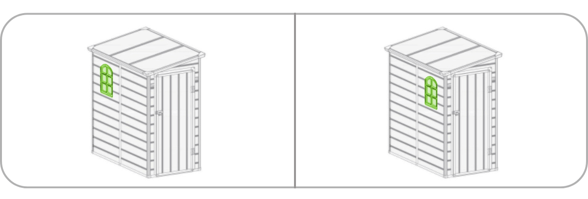 Domek Boston wyróżnia się elastycznością dzięki możliwości zamontowania okna po prawej lub lewej stronie ściany. Taka opcja pozwala na optymalne doświetlenie wnętrza i lepsze dopasowanie domku do układu przestrzeni w ogrodzie.