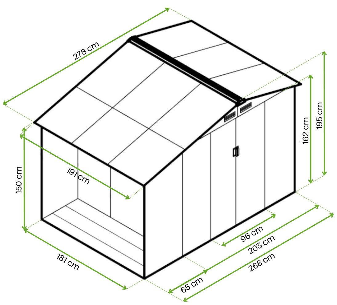 Praktyczny i trwały domek narzędziowy MADISON 278x191 cm marki Hardmaister to połączenie funkcjonalności i estetyki. Konstrukcja z ocynkowanej stali zapewnia odporność na korozję, a otwory wentylacyjne dbają o odpowiednią cyrkulację powietrza. Podwójne drzwi przesuwne umożliwiają wygodne użytkowanie, a drewutnia z możliwością montażu po obu stronach zwiększa elastyczność. Prosty montaż i brak konieczności konserwacji czynią go doskonałym wyborem do każdego ogrodu.