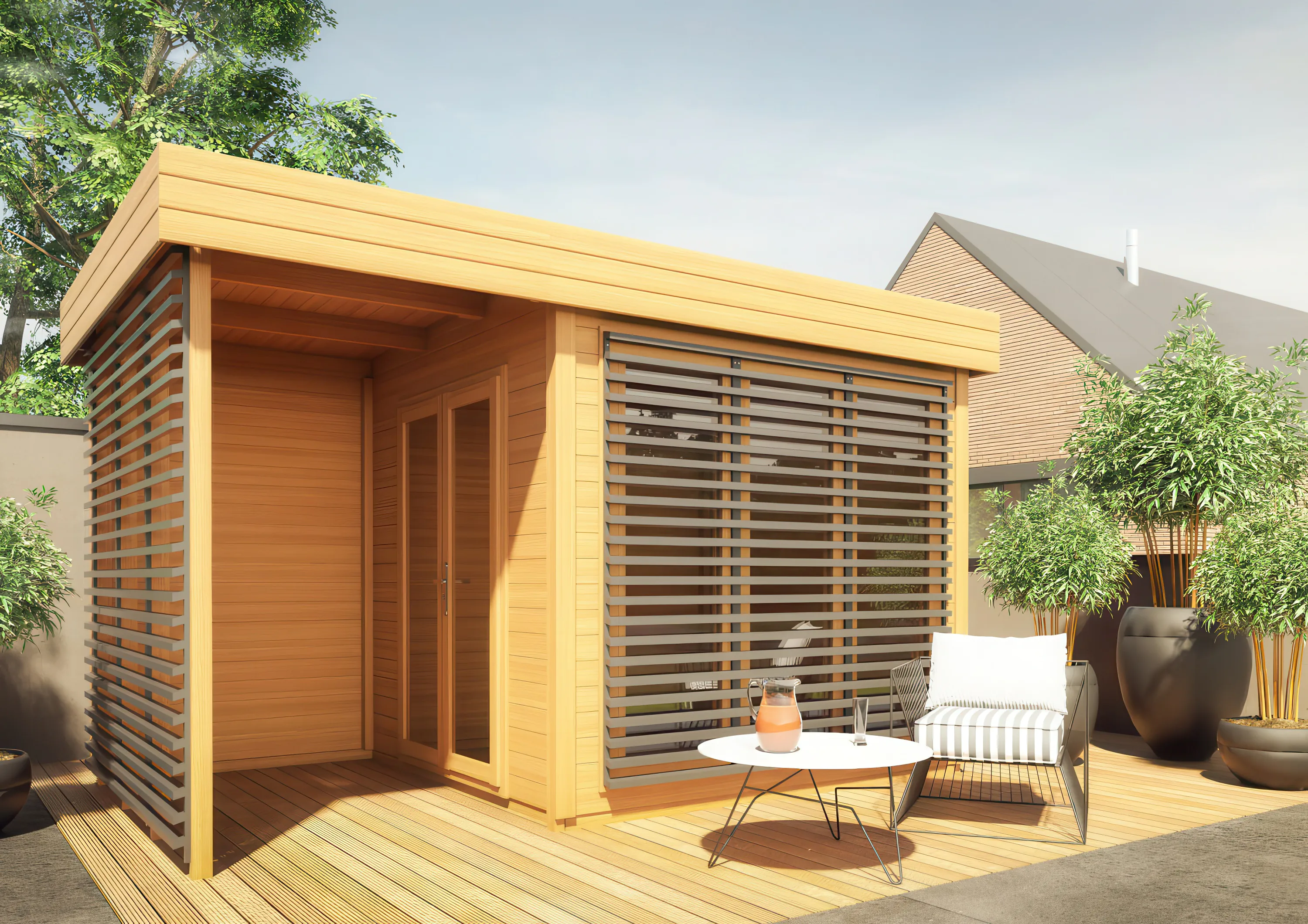 Domek ogrodowy można uzupełnić o dwie dostawki - większą i mniejszą - co pozwala zwiększyć powierzchnię użytkową i lepiej zorganizować przestrzeń. To idealne rozwiązanie, jeśli potrzebujesz dodatkowego miejsca na narzędzia, drewno lub sprzęt ogrodowy.
