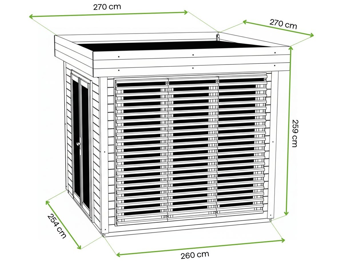 Domek ogrodowy Lawenda 270 × 270 cm to praktyczna i estetyczna przestrzeń do przechowywania narzędzi, sprzętu ogrodowego i akcesoriów sezonowych. Solidne ściany z desek pióro–wpust 28 mm, podwójne drzwi i funkcjonalny układ zapewniają wygodne użytkowanie, trwałość i porządek w ogrodzie. To uniwersalne zaplecze do codziennych prac i organizacji przestrzeni. Do tego domku możliwa jest opcja domówienia dostawki w dwóch rozmiarach widocznych na zdjęciach.