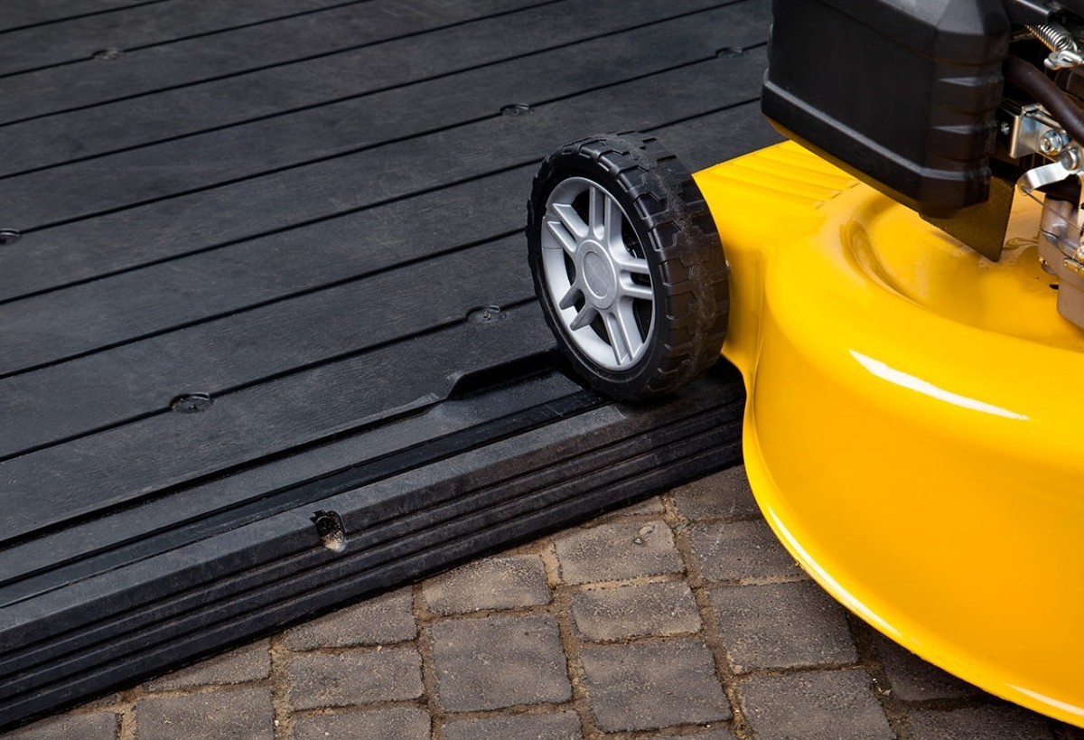 Obniżony próg ułatwia wprowadzanie taczek, kosiarek i większych gabarytów. Brak barier ułatwia dostępność i codzienne użytkowanie.