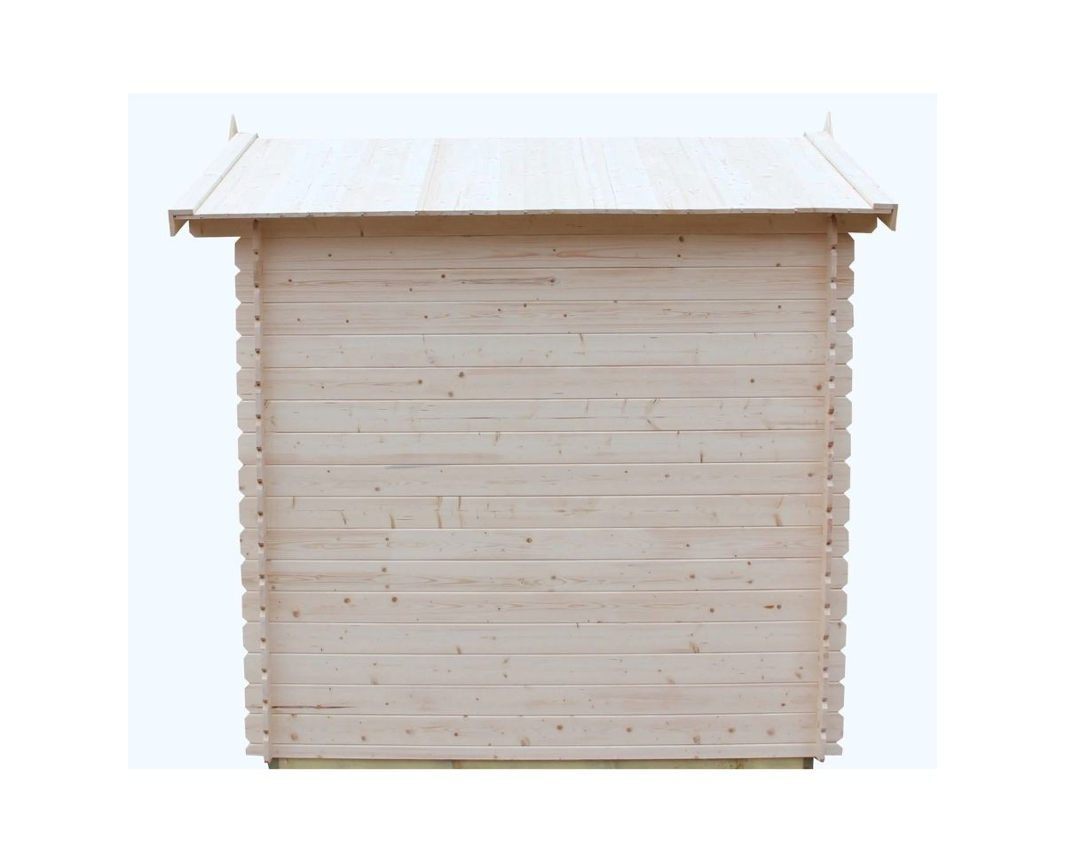 Dwuspadowy dach z drewna świerkowego, pokryty papą asfaltową, skutecznie chroni wnętrze przed deszczem i śniegiem. Dodatkowo odpowiednia wilgotność drewna (18%) oraz możliwość regularnej impregnacji sprawiają, że domek ogrodowy zachowuje swoje właściwości przez wiele sezonów