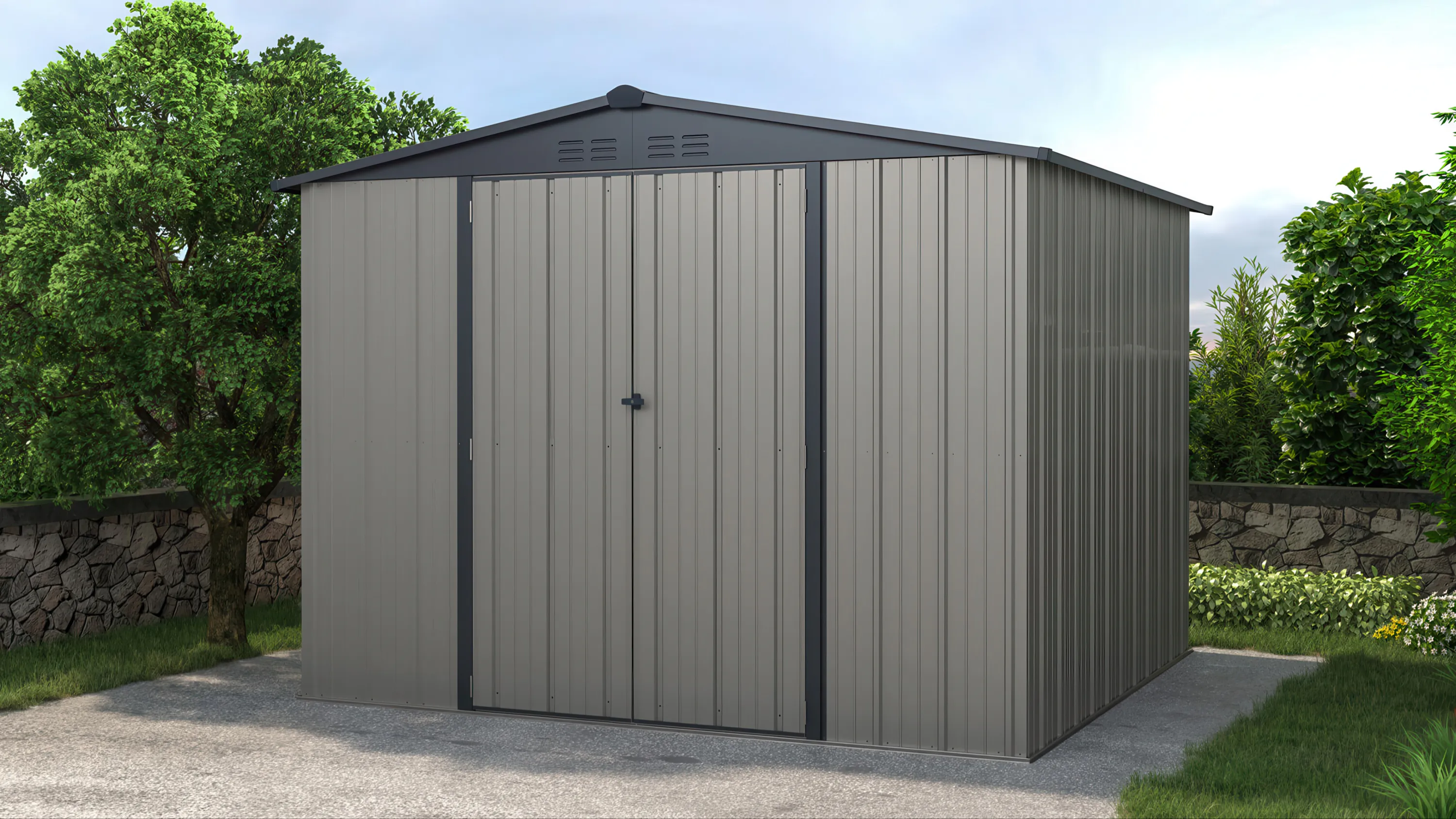 Marzysz o idealnym miejscu do przechowywania swoich narzędzi bez obaw o zniszczenie ich przez czynniki atmosferyczne? Domek ogrodowy RICHMOND 294x269 Grey został stworzony specjalnie po to, by rozwiązać te problemy. Ten niesamowity domek to nie tylko miejsce, gdzie z łatwością pomieścisz swoje narzędzia, ale także element, który podniesie estetykę Twojego ogrodu na zupełnie nowy poziom. W przeciwieństwie do innych konstrukcji, domek ogrodowy RICHMOND został zaprojektowany z myślą o trwałości, funkcjonalności i stylu. Dzięki stalowym panelom, które zostały pokryte wysokiej jakości farbą w eleganckim odcieniu szarości, nie tylko zapewnimy trwałą ochronę przed korozją, ale także dodamy do Twojego ogrodu nutę nowoczesnego designu. To rozwiązanie, które łączy praktykę z estetyką. Nie musisz się martwić o warunki atmosferyczne. RICHMOND jest odporny na deszcz, śnieg oraz nawet najbardziej bezlitosne słońce. Jego solidna konstrukcja zabezpiecza Twój sprzęt nawet w najtrudniejszych warunkach pogodowych, zapewniając Ci spokój i pewność, że Twój cenny sprzęt jest bezpieczny. Wysokie drzwi z solidnym zamkiem gwarantują ochronę przed niepożądanymi gośćmi. Dzięki odpowiedniej wysokości, bez problemu pomieścisz w nim kosiarkę, drabiny, czy nawet cały zestaw elektronarzędzi. To miejsce, gdzie wszystko będzie miało swoje idealne, uporządkowane miejsce. Pomyśl o tym jako o swojej własnej przestrzeni, w której możesz w pełni realizować swoje ogrodowe pasje bez żadnych przeszkód. Nie trać więcej czasu na poszukiwanie narzędzi, nie martw się o ich stan - nasz domek RICHMOND to gwarancja bezpieczeństwa, trwałości i estetycznego wyglądu. Zainwestuj w RICHMOND już teraz i ciesz się ogrodową przestrzenią tak, jak zawsze marzyłeś!