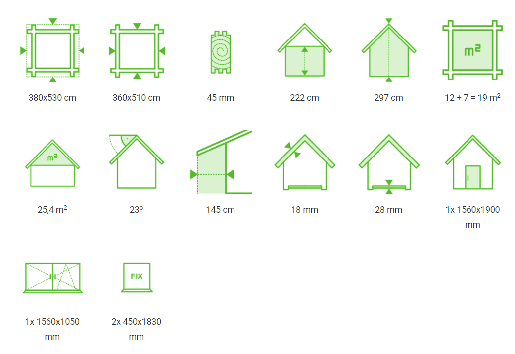- Powierzchnia dachu: 25,4 m2
