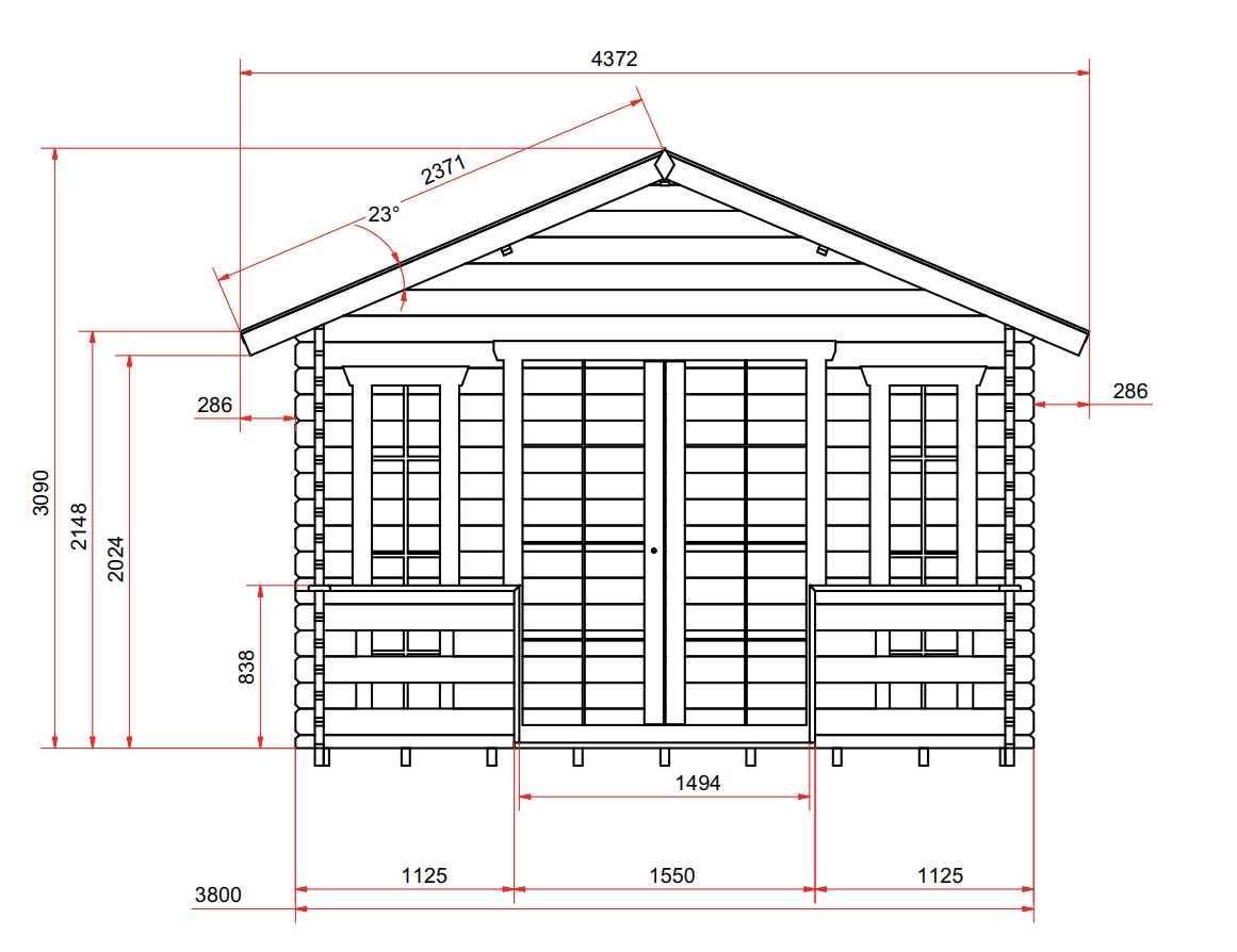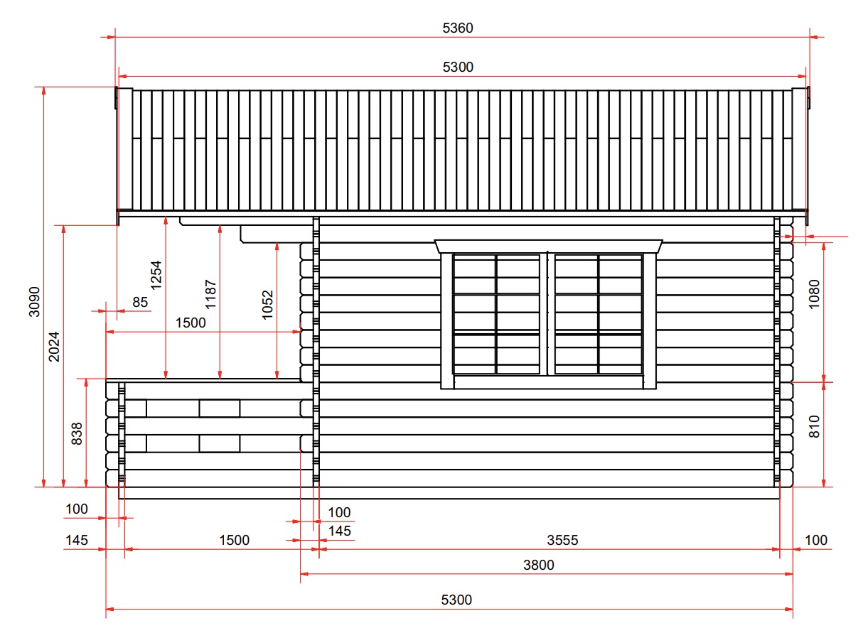 Havilla to domek, który składa się z jednego pomieszczenia i zewnętrznego tarasu. Od strony frontowej budynku znajduje się: dwuskrzydłowe, przeszklone drzwi wejściowe oraz dwa wąskie, wysokie okna stałe (świetliki). Z prawej strony zamontowano dodatkowo uchylno-rozwierane okno systemowe. Warto zwrócić uwagę na piękne szprosy w oknach, które dodają całości unikalnego charakteru. Dodatkowo oferujemy szereg opcji dodatkowych, które pozwalają na rozbudowaną możliwość modyfikacji projektu. Możesz zdecydować się na montaż okiennic, ocieplenie ścian, podłogi i dachu, a także kilka rodzajów rynien i wersji kolorystycznych. Zastosowanie ocieplenia i piecyka pozwala na korzystanie z domku przez cały rok.