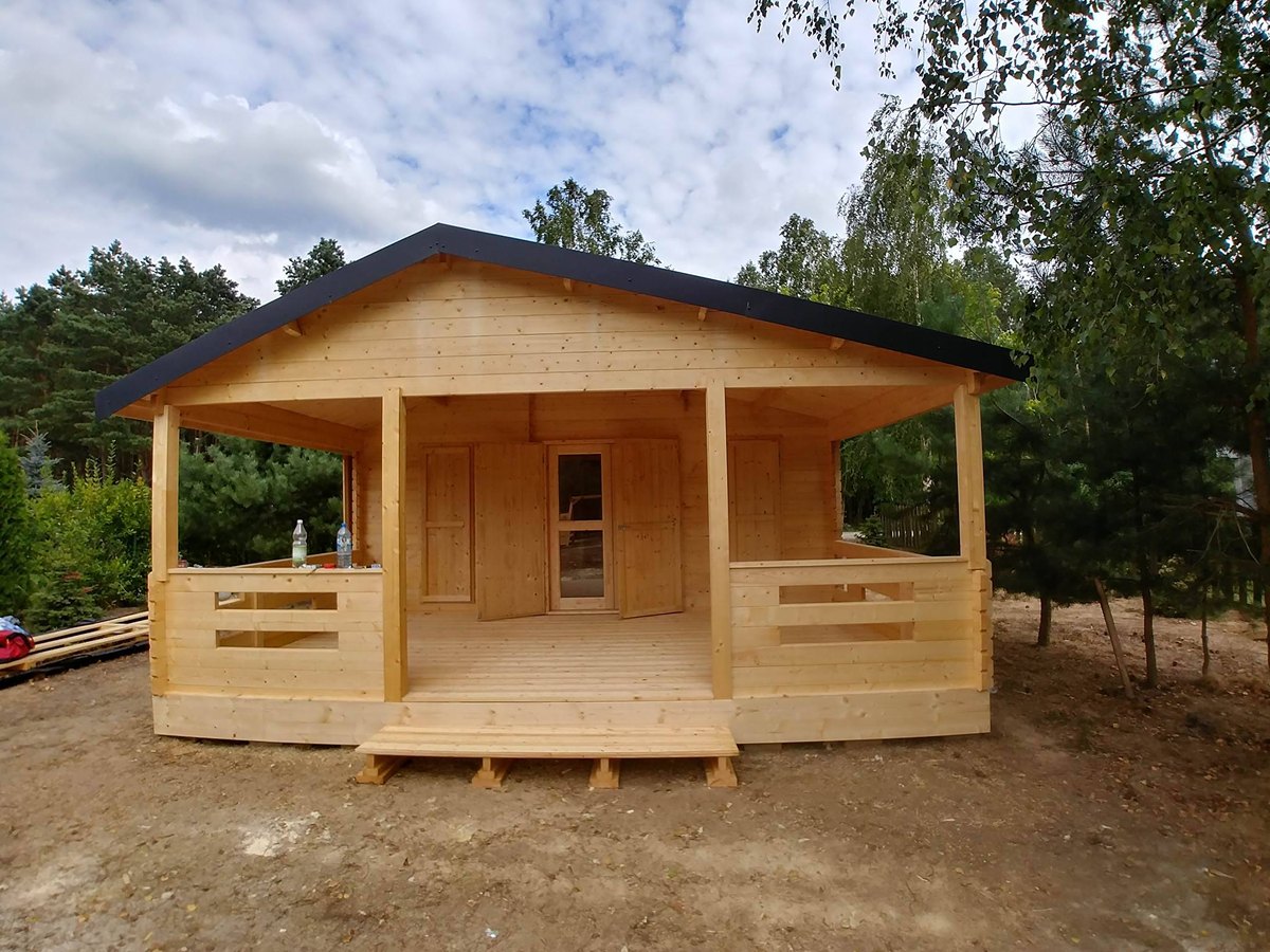 Domek drewniany Piryd charakteryzuje się prostą konstrukcją i jasnym wnętrzem. Projekt ten idealnie sprawdzi się jako domek na wynajem, domek letniskowy czy przestrzeń biznesowa. Niewielki metraż kwalifikuje Piryd do budowy bez pozwolenia budowlanego. Budynek wykonano z solidnego drewna świerku skandynawskiego. Przy odpowiedniej i regularnej impregnacji, domek zachwyci długą żywotnością i niezawodnością. To stabilna i trwała konstrukcja. Wymiary domku Piryd wraz z elementami wystającymi to 800x600 cm (bez el. wystających: 580 x 780 cm), co przekłada się na całkowitą powierzchnię użytkową 43 m2. Dzieli się ona na 32 m2 przestrzeni mieszkalnej i 11 m2 przypadających na taras. Konstrukcja budynku składa się z wysokojakościowych bali świerkowych o znacznych grubościach. Wykorzystane w konstrukcji domku drewno zostało poddane obróbce cyfrowej, dzięki której części składowe budynku są równe i precyzyjnie wykończone. W efekcie można je bardzo łatwo ze sobą połączyć. Klienci mogą sami złożyć domek lub skorzystać z pomocy naszej ekipy monterskiej.