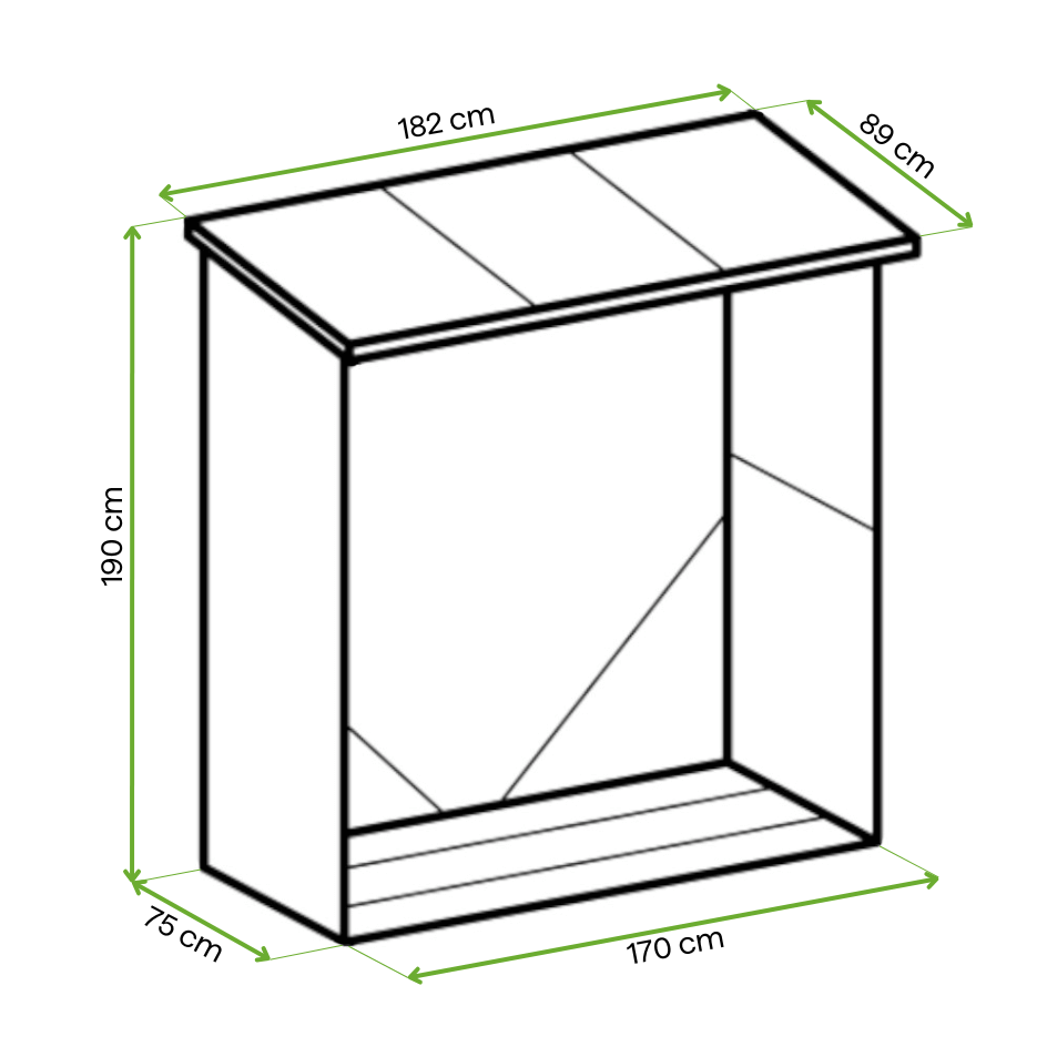 Dzięki swojej wąskiej, ale wysokiej formie, drewutnia Denver doskonale sprawdzi się zarówno w większych, jak i mniejszych ogrodach. Może być umieszczona obok budynku, przy domku na narzędzia lub płocie, nie zajmując przy tym zbyt dużo miejsca. Mimo kompaktowych rozmiarów (powierzchnia 1,28 m² i wysokość 1,9 m), oferuje przestronną przestrzeń, która pomieści sporą ilość opału na nadchodzący sezon grzewczy.