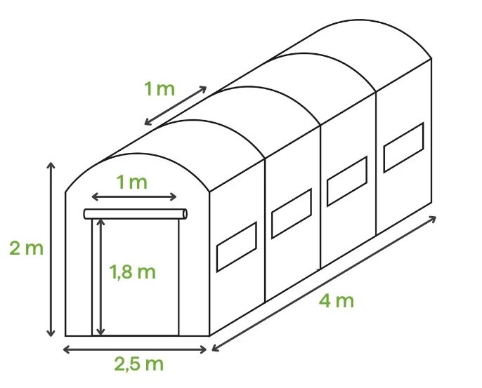 Czterosezonowa folia PE o gramaturze 140g/m² z filtrem UV4, stworzona dla tunelu Focus Garden o wymiarach 2,5x4x2, charakteryzuje się świetną przepuszczalnością światła i efektywną regulacją temperatury. Wzmocniona wytrzymałą siatką PP, cechuje się odpornością na uszkodzenia mechaniczne. Fartuch ziemny stabilizuje konstrukcję, a rzepy zapewniają odpowiednie napięcie folii. 8 okien z moskitierami poprawia wentylację, a rolowane drzwi po obu stronach folii umożliwiają łatwy dostęp i skutecznie chronią uprawy przed czynnikami atmosferycznymi oraz szkodnikami.
