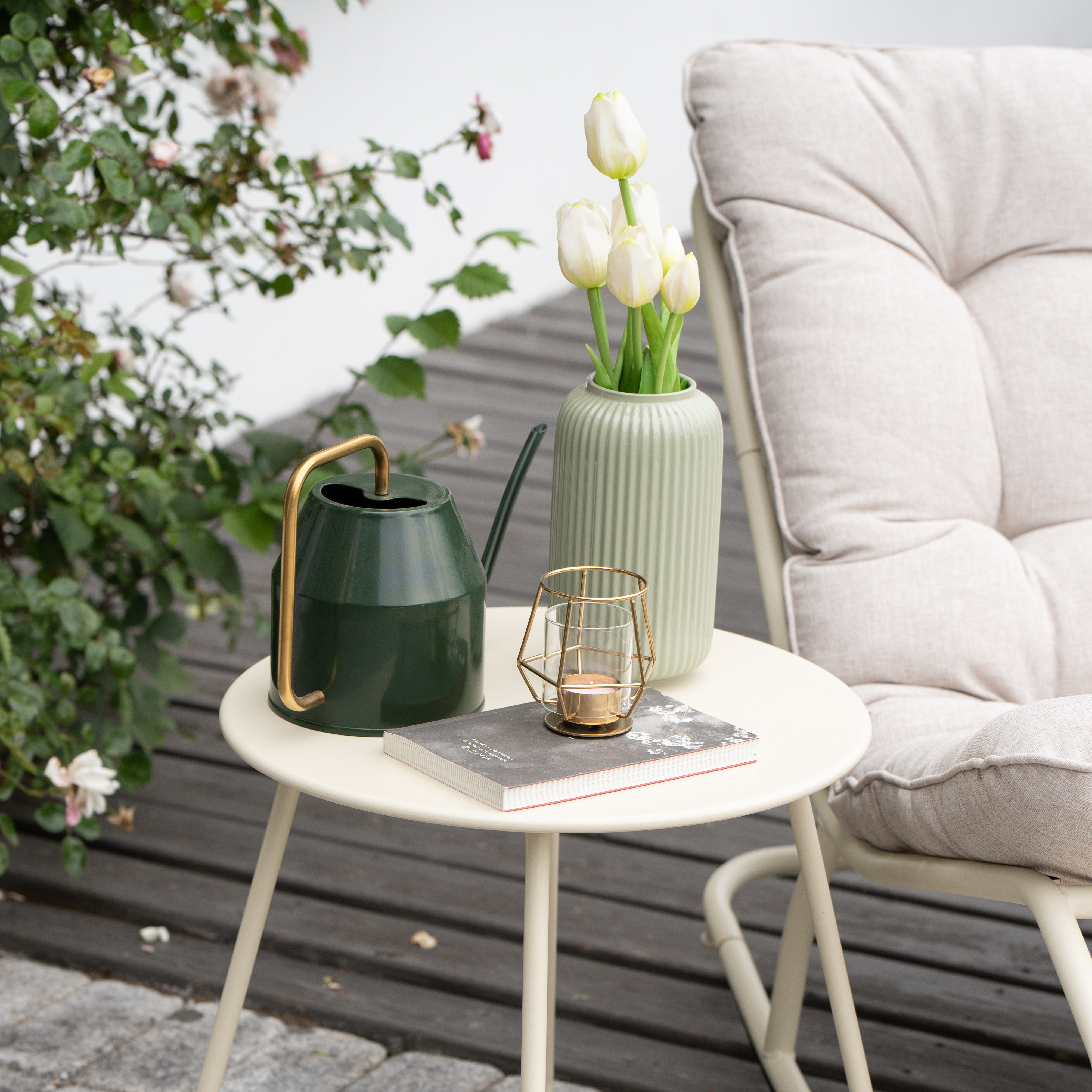 Solidna konstrukcja – stalowa rama fotela i stolik z powłoką Electrocoating zapewniają trwałość i odporność na warunki atmosferyczne.