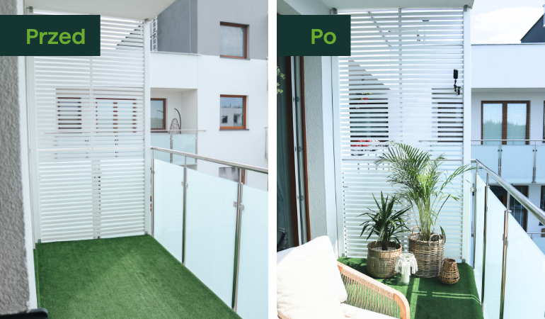 Zwieńczeniem prac była prezentacja balkonu po metamorfozie. Przestrzeń przeszła całkowitą transformację, zyskując nowy wymiar funkcjonalności i estetyki.