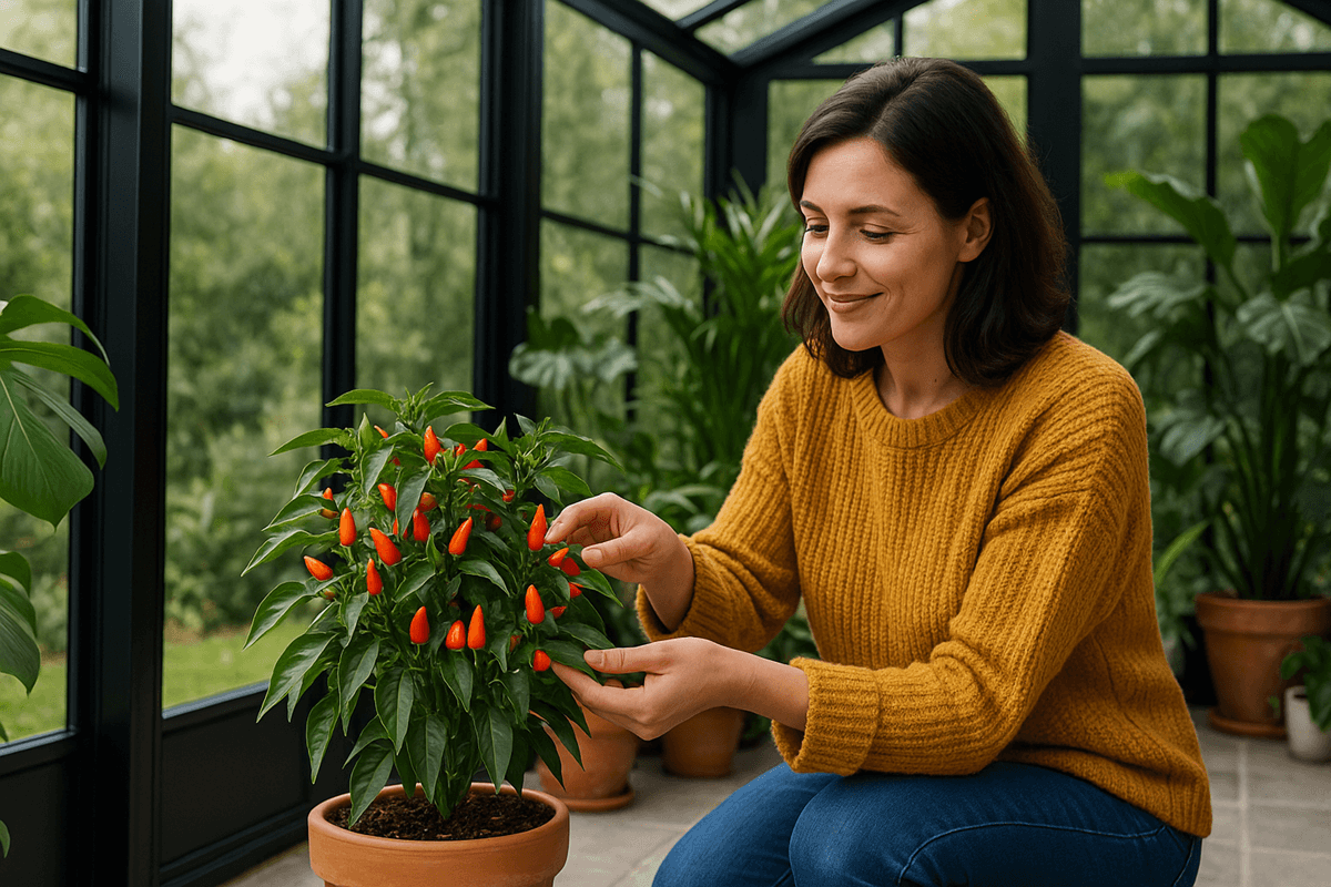 Niewielkie krzaczki papryczek chili dodają aranżacji koloru i pazura. Są łatwe w uprawie, a ich owoce możesz wykorzystywać w kuchni przez cały rok. Świetnie komponują się z cytrusami lub innymi roślinami tropikalnymi.