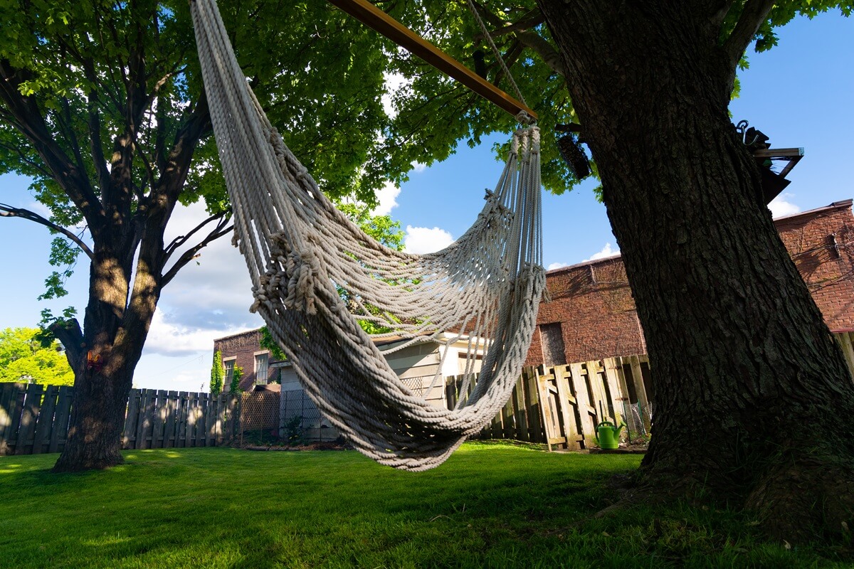 Drewniane lub metalowe ławki, hamaki czy huśtawki idealnie komponują się z cienistymi zakątkami. To świetne miejsce na popołudniową kawę lub drzemkę.