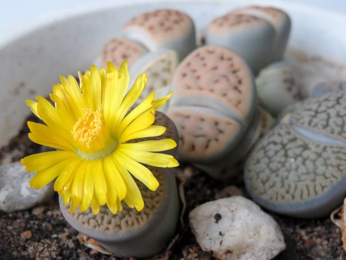 Lithops – tzw. „żywe kamienie”, o unikalnym wyglądzie imitującym otoczenie.