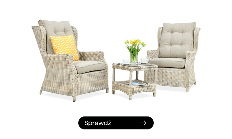 Chcesz stworzyć na balkonie kącik kawowy, miejsce do krótkiego wypoczynku do pracy i podziwiania widoków z góry? Nie musisz mieć dużego balkonu, by skorzystać z zestawu mebli technorattanowych z serii Trivento. Możesz wybrać zestaw dwóch foteli i stolika kawowego w modnym kolorze. Zestawy dostępne są w jasnej szarości, ciemnej szarości oraz w klasycznym brązie. Nie bój się, że po sezonie na słońcu produkt zmieni swój kolor. Nawet na nieosłoniętym balkonie w mocnym słońcu nie pojawią się na nim odbarwienia. Zestawu nie trzeba chować na zimę.