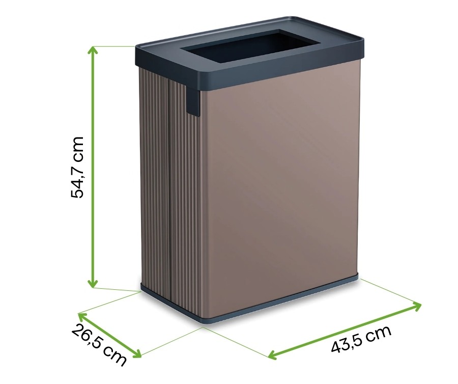 Krawędzie worka ukryte są za pomocą kryjącej ramki, co zapewnia schludny wygląd kosza.