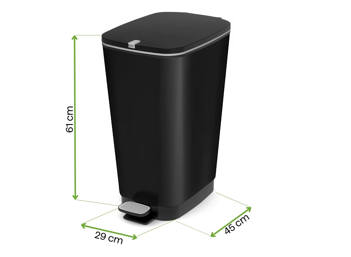 - Wygodny pedał nożny - pozwala otworzyć kosz bez użycia rąk, co zwiększa higienę i wygodę użytkowania.