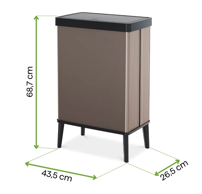 Kompaktowe rozmiary i niska waga sprawiają, że kosz jest łatwy do przenoszenia i dostosowania do różnych pomieszczeń.