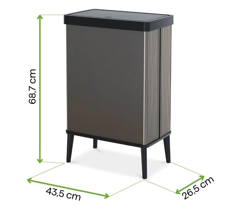 Kompaktowe rozmiary i niska waga sprawiają, że kosz jest łatwy do przenoszenia i dostosowania do różnych pomieszczeń.