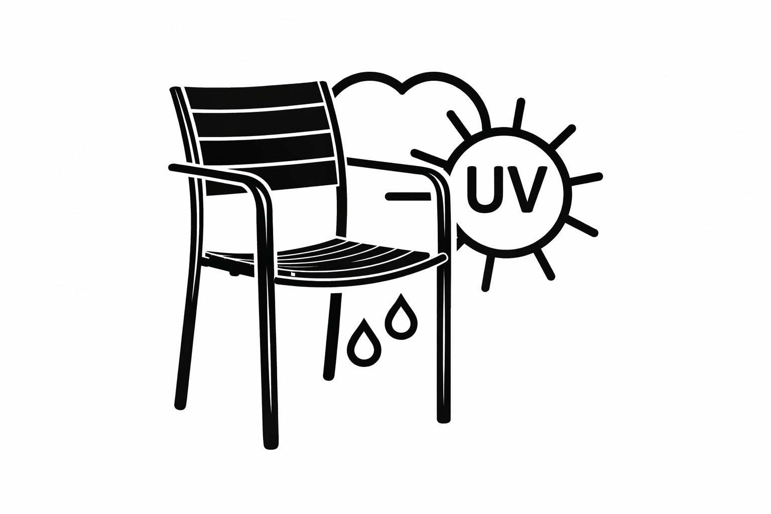 Materiały zastosowane w krześle są przystosowane do użytkowania na zewnątrz i nie wymagają dodatkowej ochrony. Filtr UV ogranicza blaknięcie koloru pod wpływem słońca.