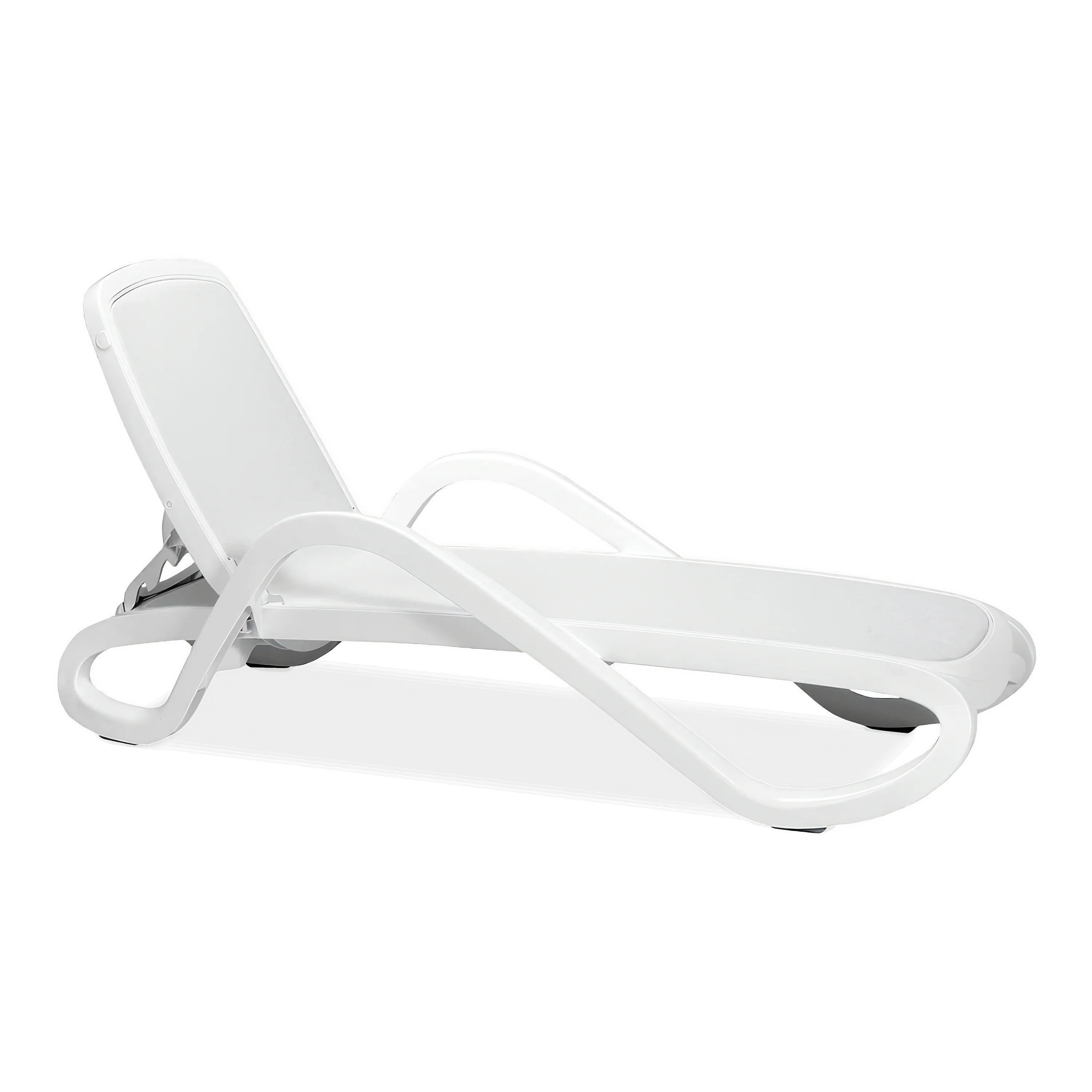 Leżak ogrodowy Alfa Nardi Bianco jest rozwinięciem koncepcji leżaka Eden tego samego producenta i stanowi jego bardziej komfortową wersję. Mamy więc to samo najlepsze tworzywo w postaci 100% polipropylenu (rama leżaka), ale już samo siedzisko i oparcie wykonano ze specjalnej, oddychającej, mocnej i dodatkowo wymiennej tkaniny syntetycznej, która z powodzeniem wykorzystywana jest w meblach zewnętrznych. Leżak basenowy Nardi Alfa Bianco jest świetnie wykonany i ultra trwały, stąd tak doskonale radzi sobie w obiektach takich jak aquaparki, ośrodki wypoczynkowe i hotele, gdzie narażony jest na naprawdę intensywne użytkowanie. Potwierdzeniem najlepszej jakości leżaka ogrodowego Nardi Alfa Bianco jest specjalny certyfikat przyznany mu przez instytut badawczy Catas. Leżak plażowy Alfa Nardi Bianco może stać na zewnątrz przez okrągłe 365 dni w roku i nie wymaga przy tym żadnych specjalistycznych zabiegów konserwacyjnych, wystarczy go przetrzeć wilgotną ściereczką lub zmyć woda z węża ogrodowego i znowu będzie wyglądał jak nowy. Podobnie jak w tańszym modelu, również tutaj mamy 4-stopniową regulację oparcia, kółka ułatwiające transport i wygodne podłokietniki. Zdecydowanie polecamy!