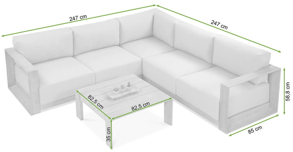 Narożnik Royal Caffe składa się z trzech niezależnych modułów: lewego, prawego i środkowego, co pozwala na elastyczne dopasowanie układu mebla do tarasu lub ogrodu. Maksymalne obciążenie dla modułów bocznych wynosi 320 kg, a dla środkowego 160 kg – to gwarancja stabilności i komfortu użytkowania.