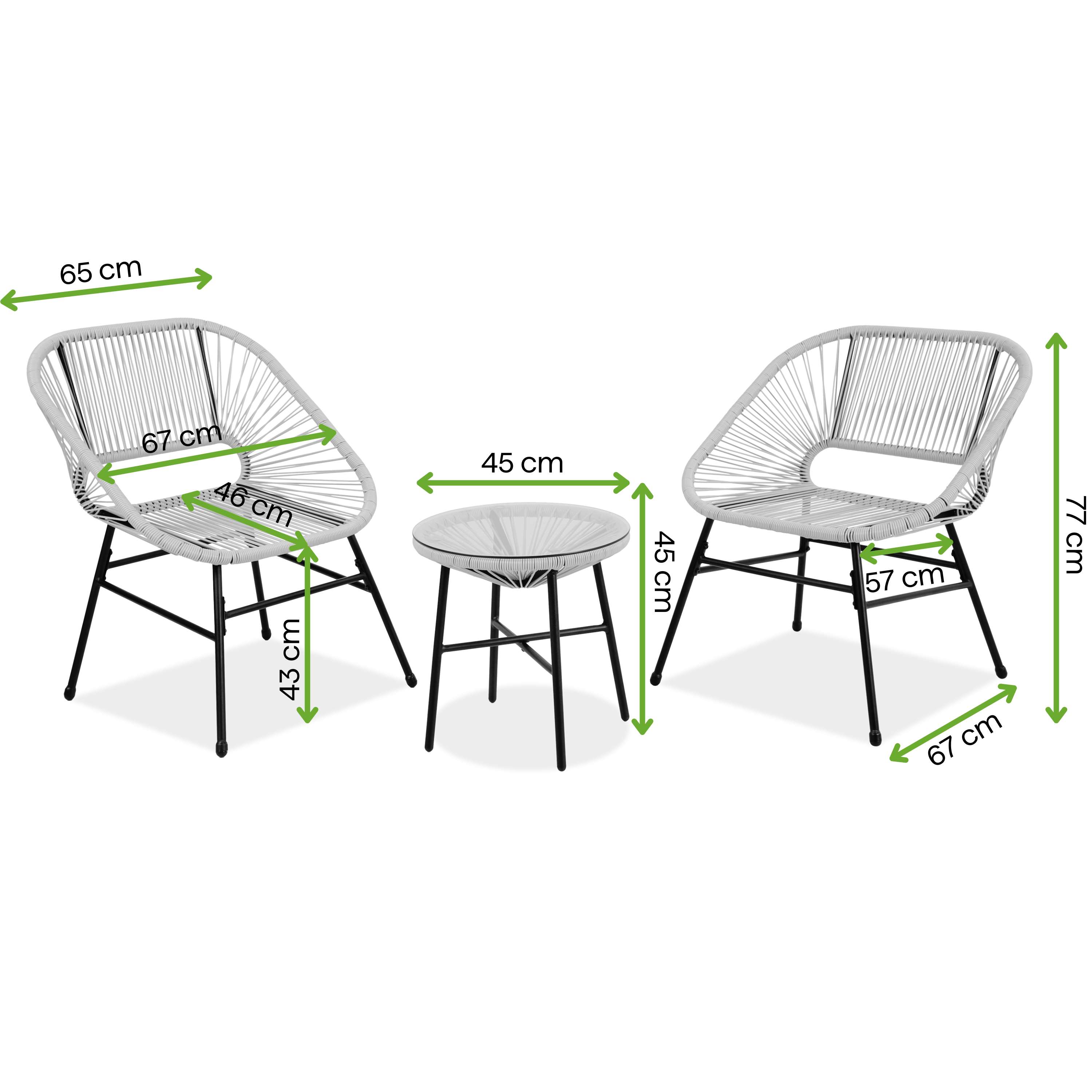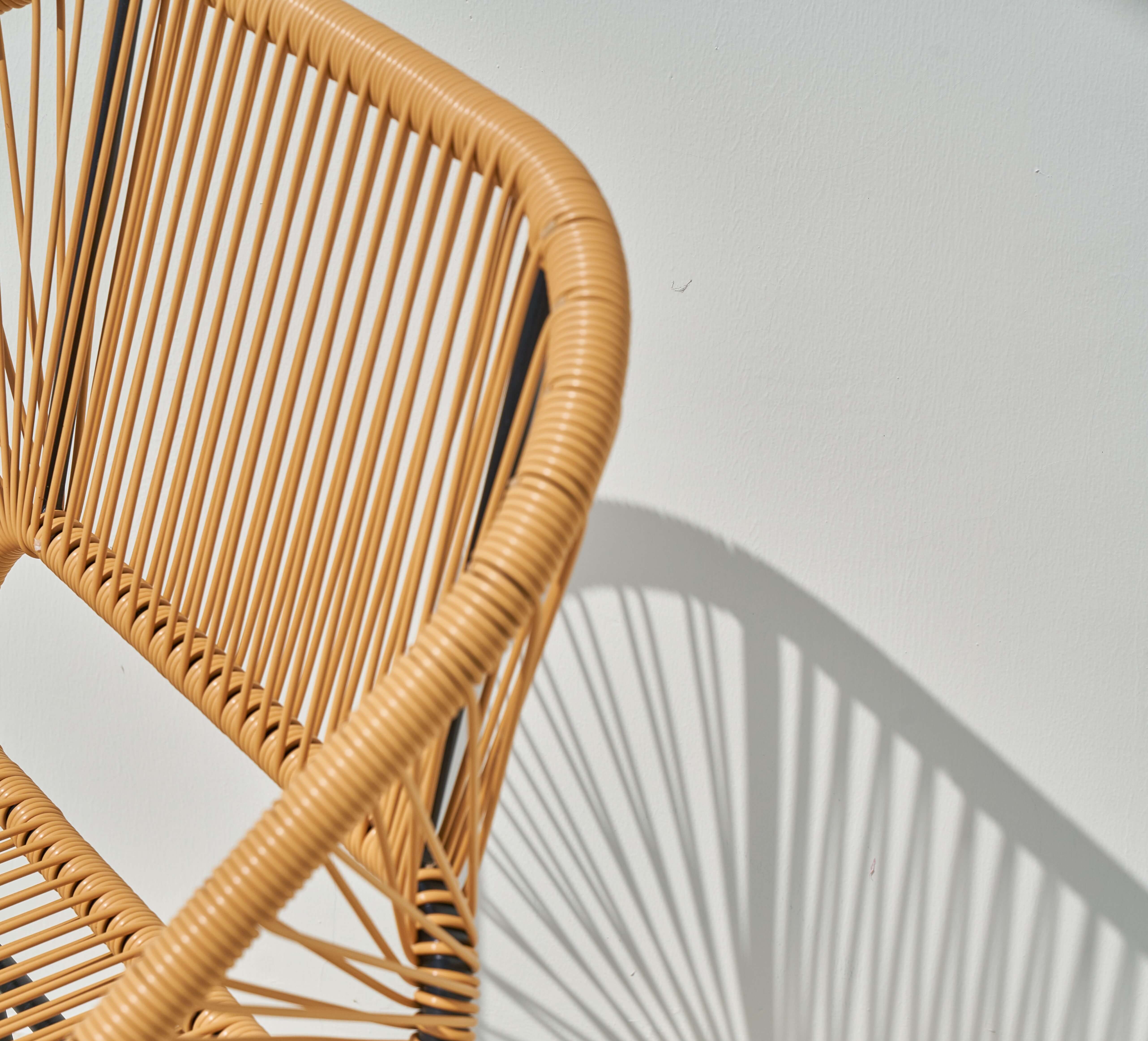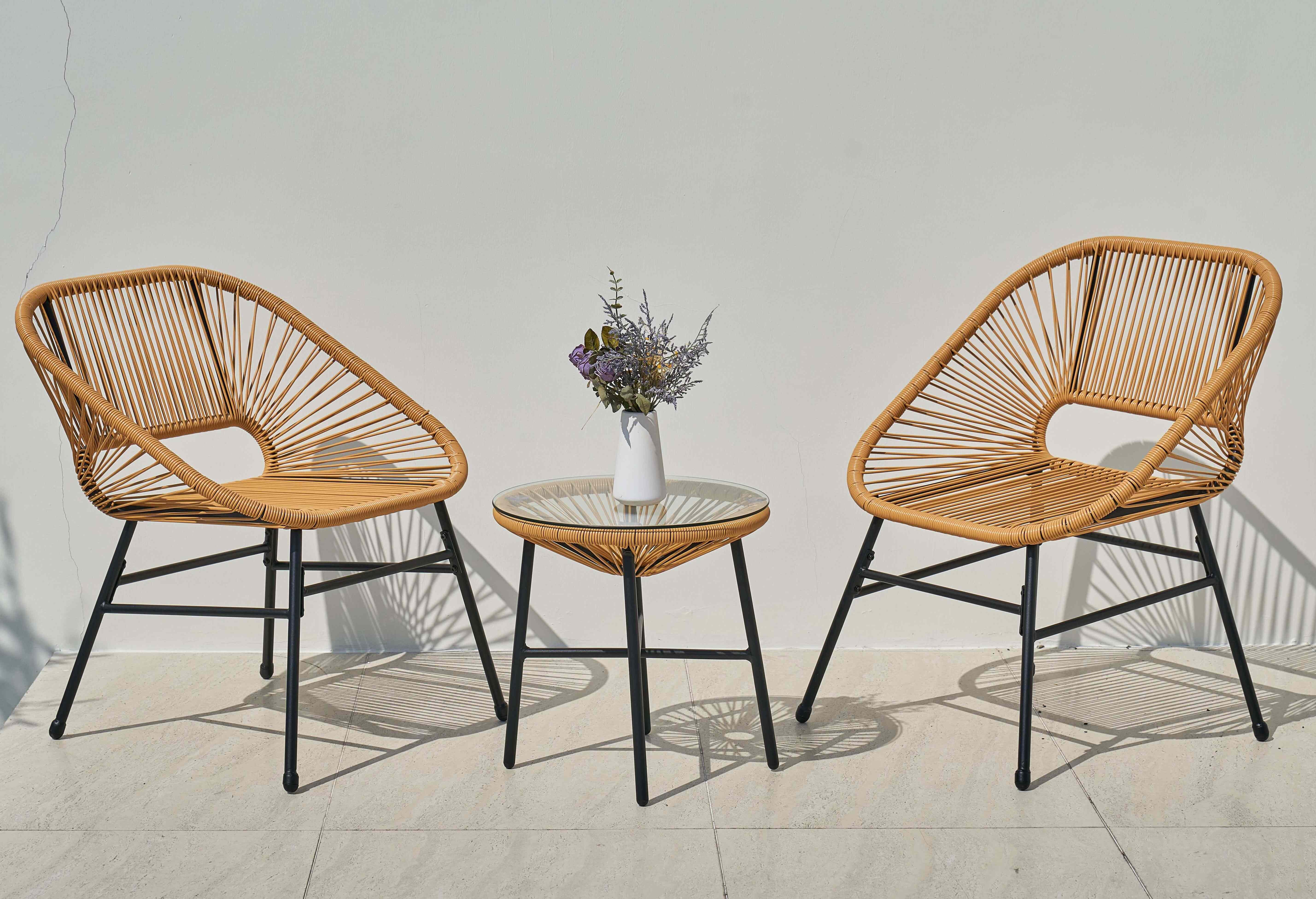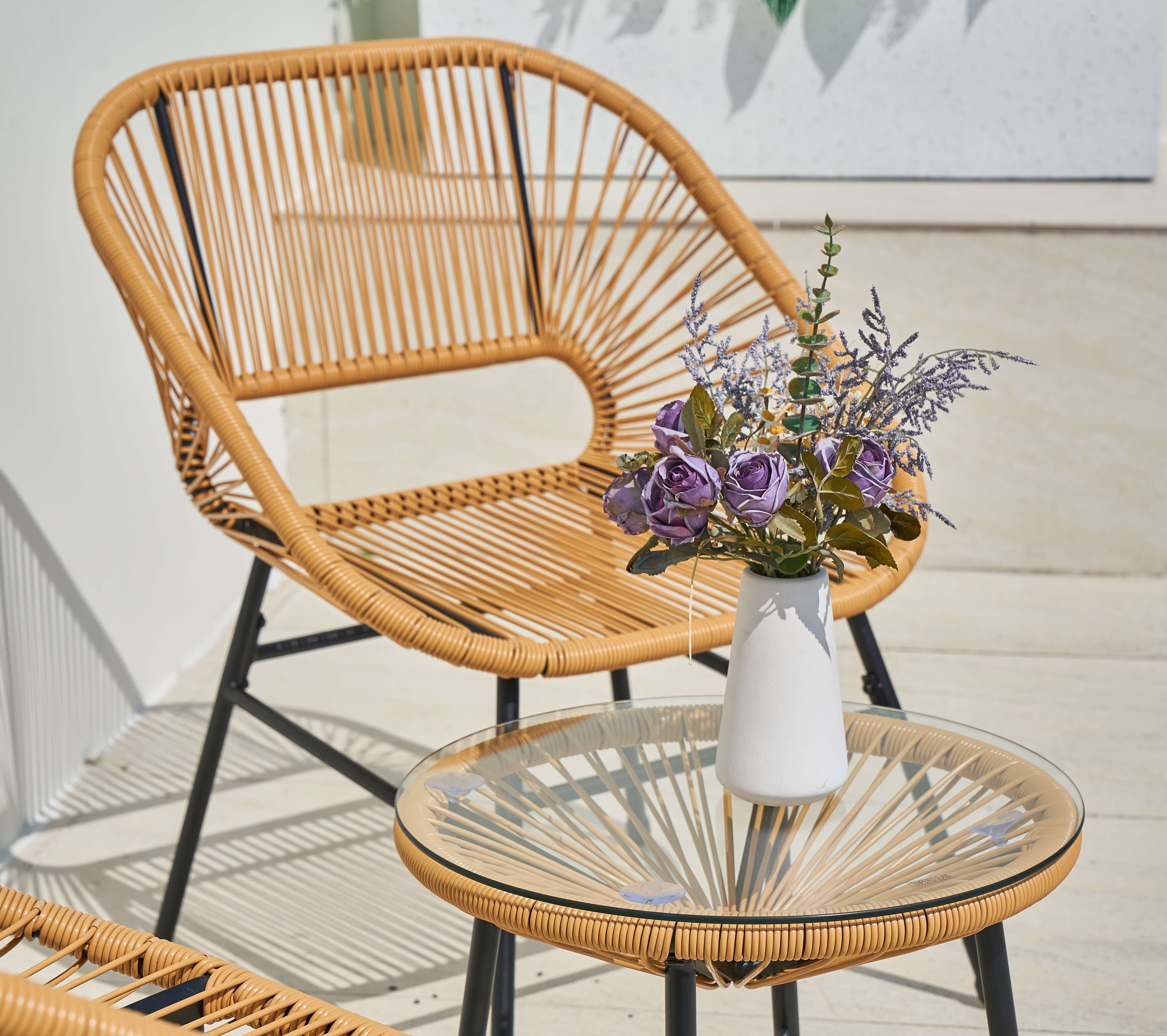 Jasny odcień dobrze komponuje się z zielenią oraz innymi elementami aranżacji balkonu. Ułatwia łączenie zestawu z różnymi dodatkami.