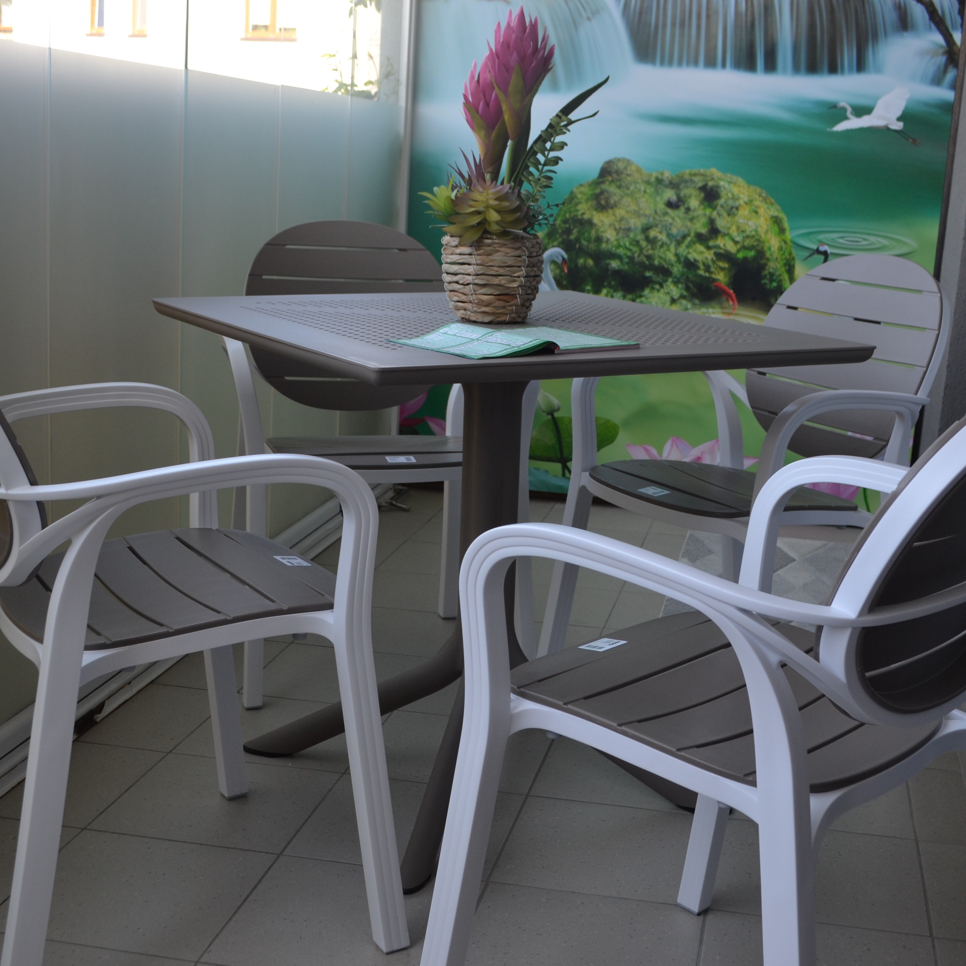 - meble ogrodowe PALMA/CLIP 4+1 Bianco Tortora zaprojektowała włoska marka Nardi, która produkuje najlepsze meble z tworzywa w Europie