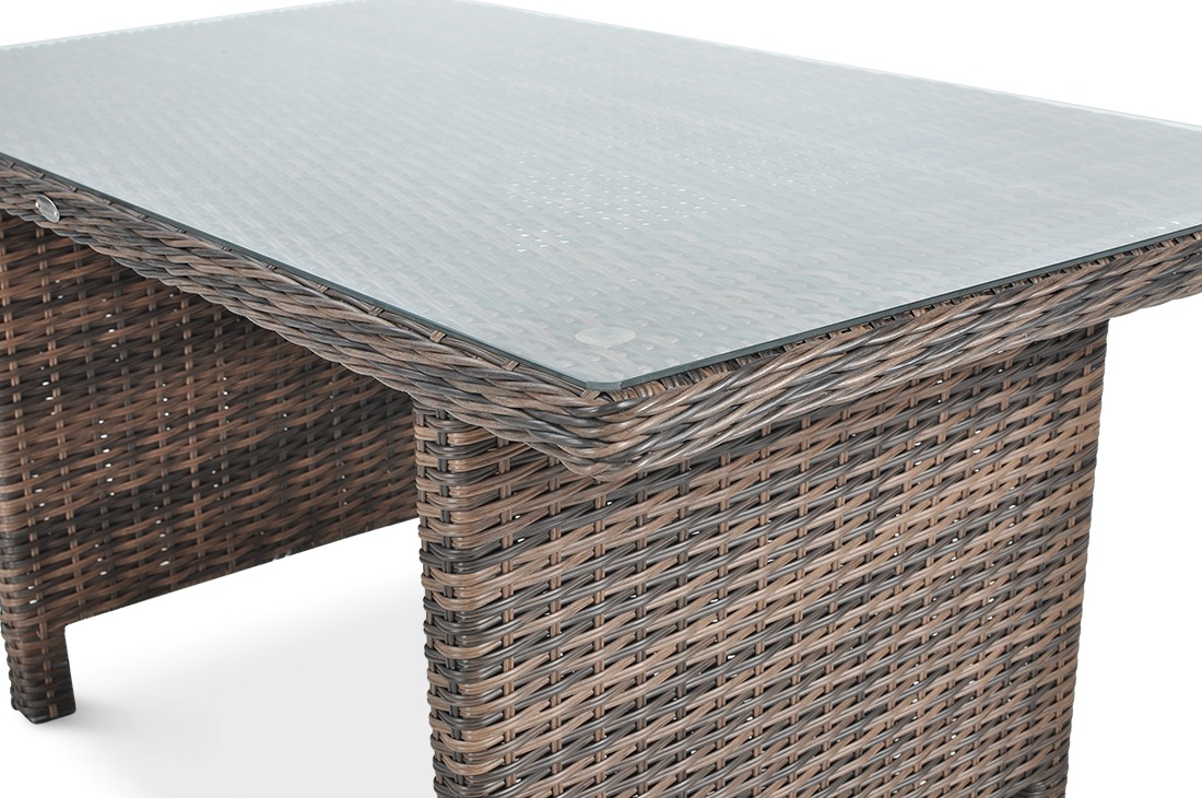 Połączenie aluminiowego stelaża i wysokiej jakości technorattanu daje wyjątkową stabilność i odporność na warunki zewnętrzne. Materiały te nie rdzewieją i nie blakną pod wpływem słońca.