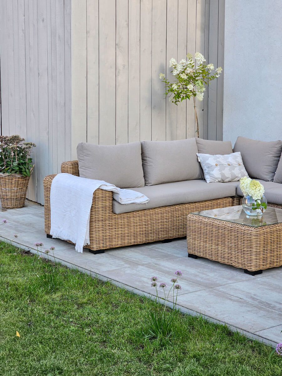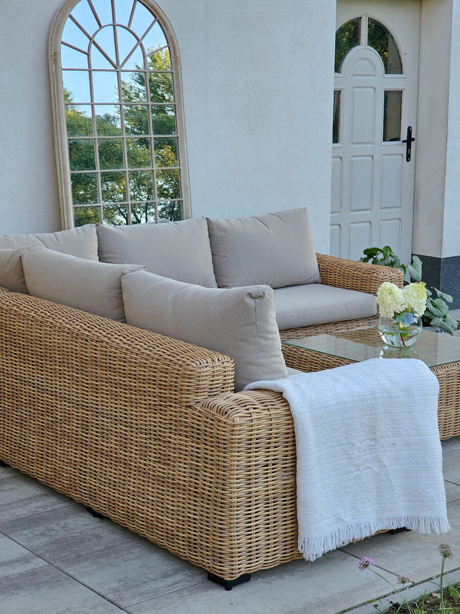 Narożnik ogrodowy JAKARTA CAFFE Beige to esencja stylu, wygody i trwałości, zaprojektowany z myślą o tych, którzy pragną przekształcić swoje tarasy i ogrody w oazy relaksu. Wykonany z najwyższej jakości materiałów, zestaw ten nie tylko zachwyca designem, ale także oferuje funkcjonalność i wytrzymałość. Konstrukcja narożnika oparta na solidnym aluminiowym stelażu, gwarantuje lekkość oraz odporność na warunki atmosferyczne. Całość pokrywa technorattanowa plecionka w odcieniach beżu i brązu. Poduszki siedziskowe, o grubości 10 cm, zapewniają nie tylko miękkość, ale również trwałość i łatwość w czyszczeniu. Ich jasny, beżowy odcień harmonizuje z ciepłą tonacją technorattanu, nadając całemu zestawowi eleganckiego, ponadczasowego charakteru. Uzupełnieniem zestawu jest kwadratowy stolik kawowy, idealny na poranną kawę, popołudniową herbatę czy wieczorne spotkania przy świecach. Blat stolika wykonany jest z hartowanego szkła o grubości 5 mm, które podkreśla nowoczesny styl mebla. Narożnik JAKARTA CAFFE Beige to nie tylko doskonałe miejsce na wypoczynek, ale również inwestycja w trwałość i prestiż. Dzięki zastosowaniu materiałów odpornych na warunki zewnętrzne, mebel pozostaje piękny przez wiele sezonów, bez konieczności czasochłonnej konserwacji. To idealny wybór dla tych, którzy cenią wysoką jakość i niezrównany komfort. Odmień swoją przestrzeń już dziś i pozwól sobie na chwile relaksu w otoczeniu stylu i natury!