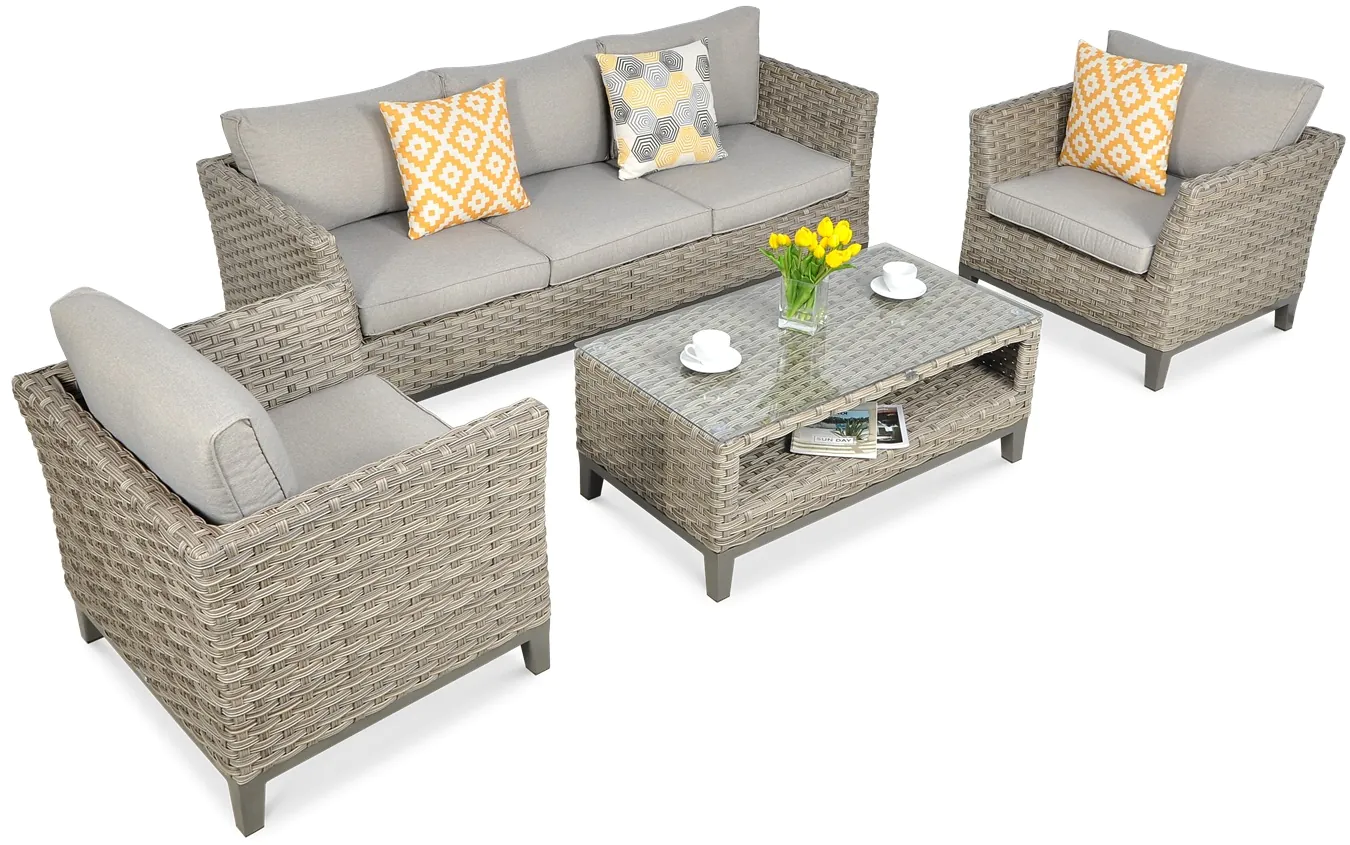- dzięki użyciu materiałów najwyższej jakości (technorattan, aluminium) nasz zestaw oznacza się maksymalną trwałością, nie wymaga też żadnej dodatkowej pielęgnacji i konserwacji