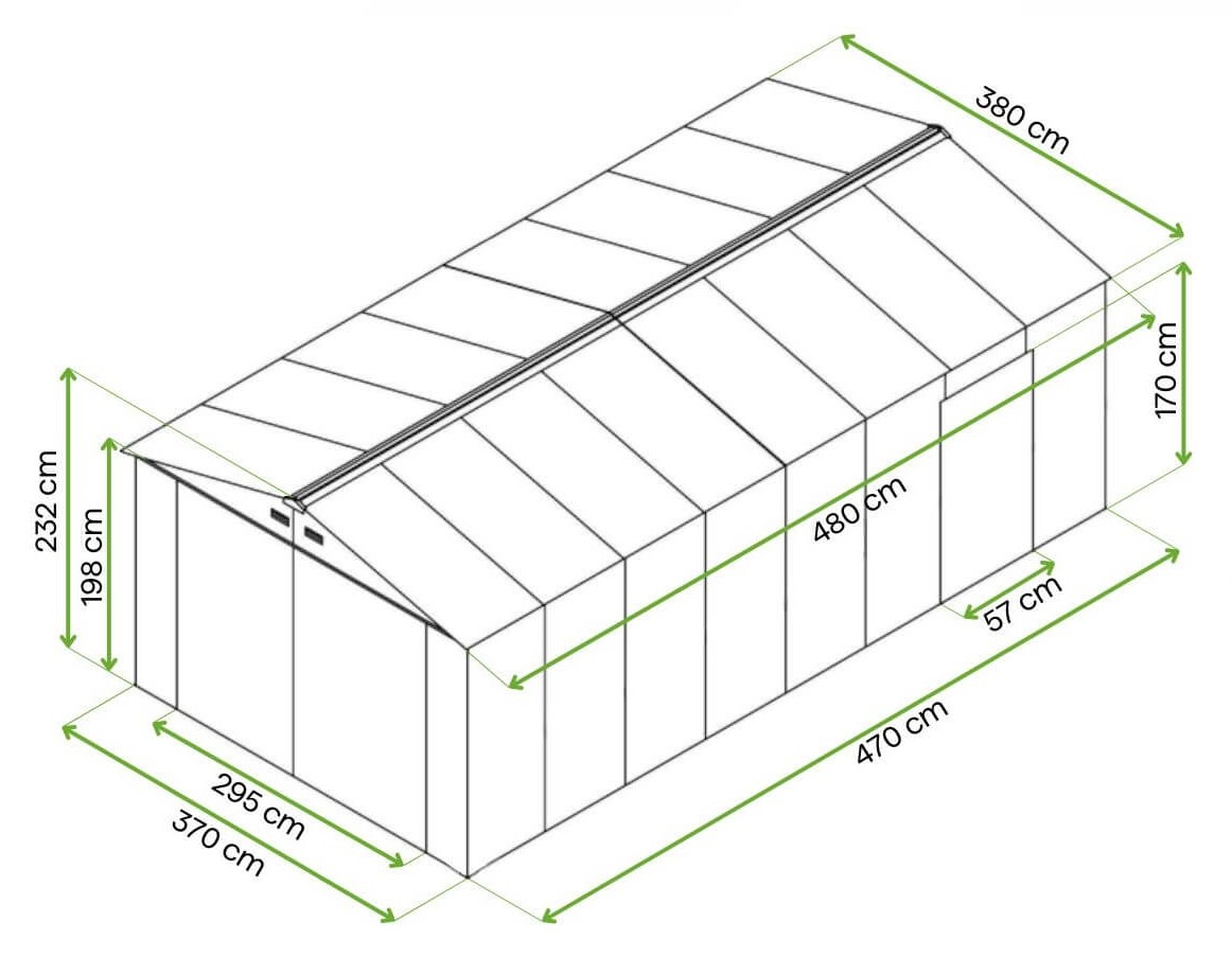 Dzięki zastosowanym materiałom i solidnej konstrukcji garaż skutecznie chroni zawartość przed trudnymi warunkami atmosferycznymi, takimi jak deszcz, śnieg czy wiatr, co gwarantuje długotrwałe użytkowanie. Przestronne wnętrze garażu zapewnia wystarczającą ilość miejsca do przechowywania większych pojazdów, a dwuskrzydłowa brama umożliwia łatwy wjazd i wyjazd oraz swobodny dostęp do wyposażenia. Garaż jest łatwy w montażu, co czyni go idealnym wyborem dla osób, które szukają trwałości, przestronności i niezawodności w jednym produkcie.