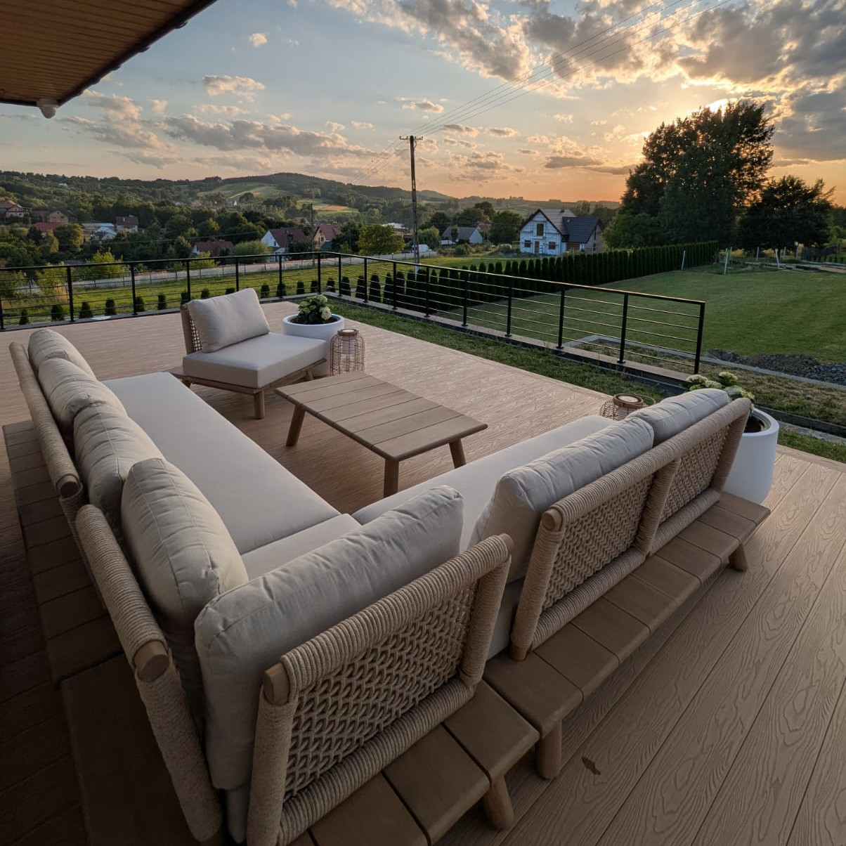 Uniwersalna kolorystyka i ponadczasowy design sprawiają, że zestaw Miya harmonijnie komponuje się z otoczeniem i podnosi estetykę każdej przestrzeni zewnętrznej.