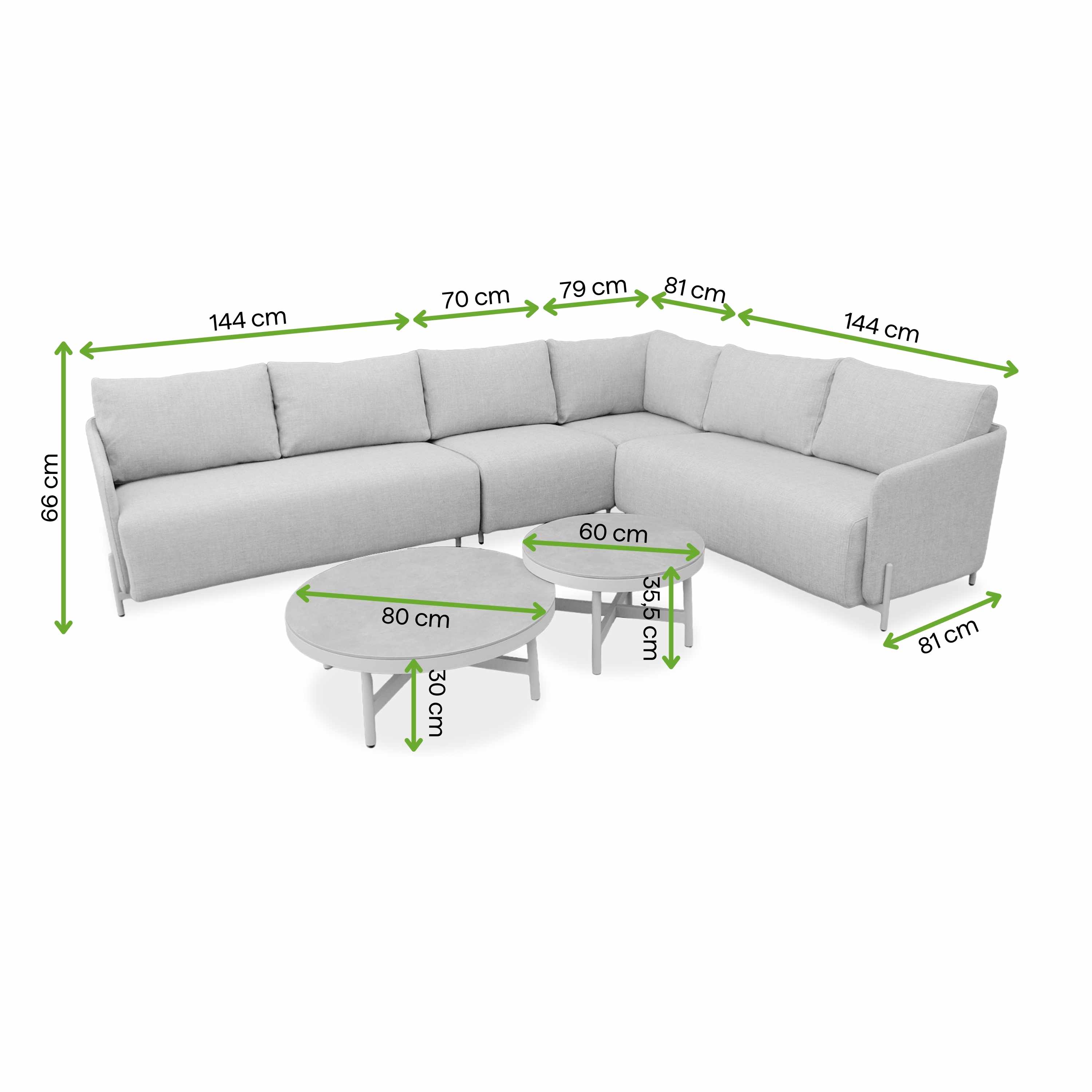 Zestaw zawiera narożnik i dwa stoliki kawowe