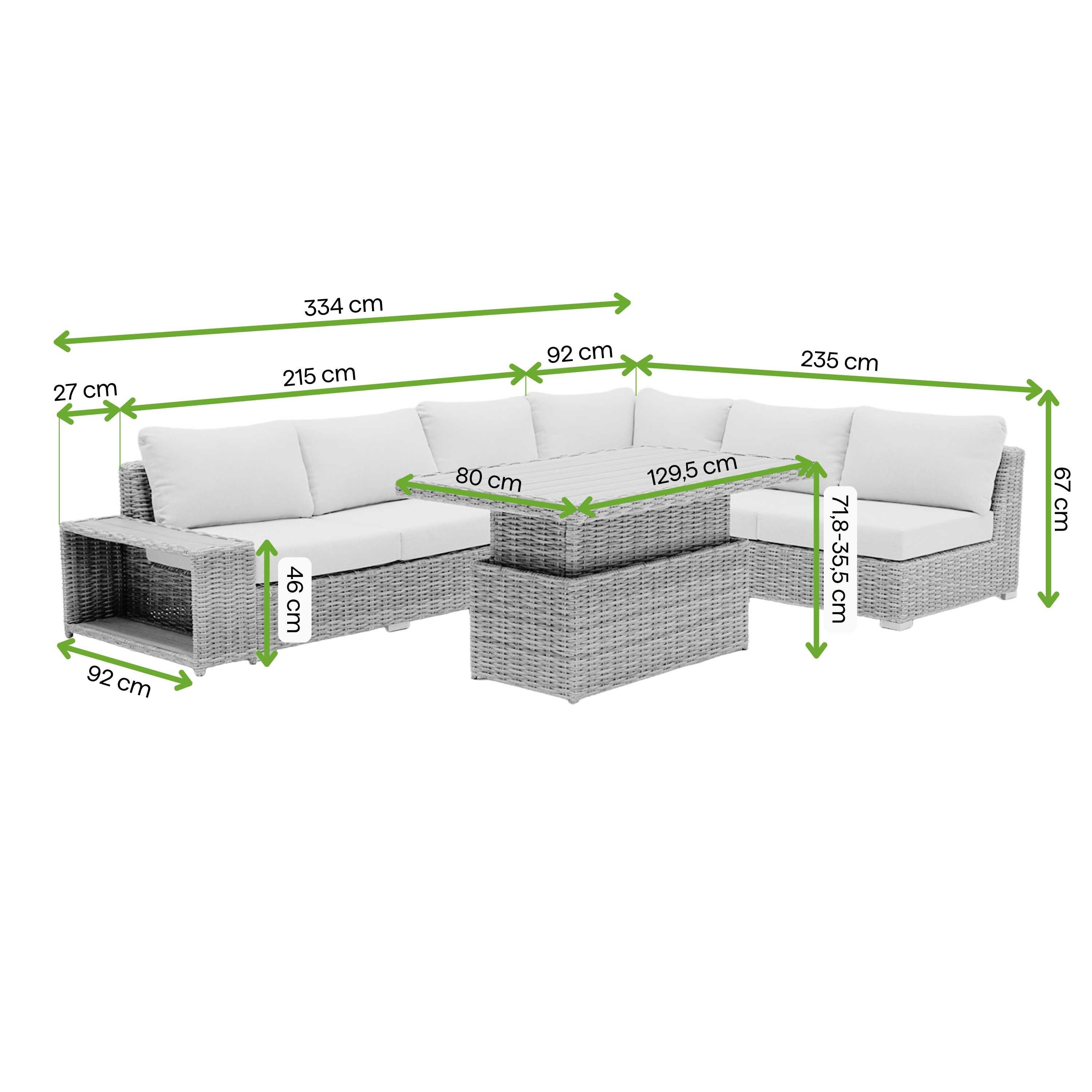 Pojemność zestawu: Przemyślane wymiary modułów pozwalają na swobodne ugoszczenie wielu osób podczas letnich przyjęć w ogrodzie.